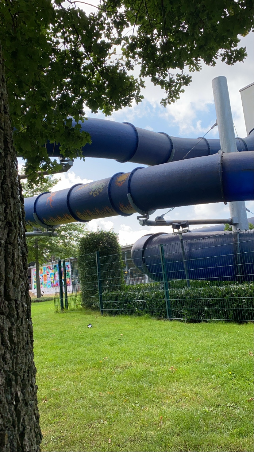 Oh Manno ey, schon der letzte richtige Programm-Tag. Wie schnell ging das eigentlich dieses Jahr schon wieder rum? Das frage ich auch jedes Jahr, aber dieses Jahr war’s besonders schnell. Heute wurden die Kinder wieder um 8, anstatt um halb 9 aus dem Bett geworfen. Um halb 10 stand wieder ein Termin im Coroni-Drive-In an. Leider ging es nicht wie sonst danach in den Freizeitpark, sondern wieder ins Schwimmbad. Voll schade, aber das Risiko war uns einfach zu hoch… ☹️ Diesmal haben wir aber vorher mit dem Schwimmbad gesprochen und die Möglichkeit bekommen, in zwei Zeitabschnitten schwimmen zu kommen: von 10:30-13:00 und dann wieder ab 14:30-17:00 Uhr. Mit Pause auf dem Zeltplatz zum Mittagessen, weil das Schwimmbad in der Zeit geputzt werden musste. Die Regeln beim Schwimmbad waren sowieso interessant. Letztes Mal habe ich ja schon erzählt, dass wir Stunden für die Anmeldung über die Homepage gebraucht haben. Diesmal doppelt so lang… Alle mussten doppelt angemeldet werden, für beide Termine. 🙄 Egal, das war’s uns wert. Die Kinder fanden es super im Schwimmbad!