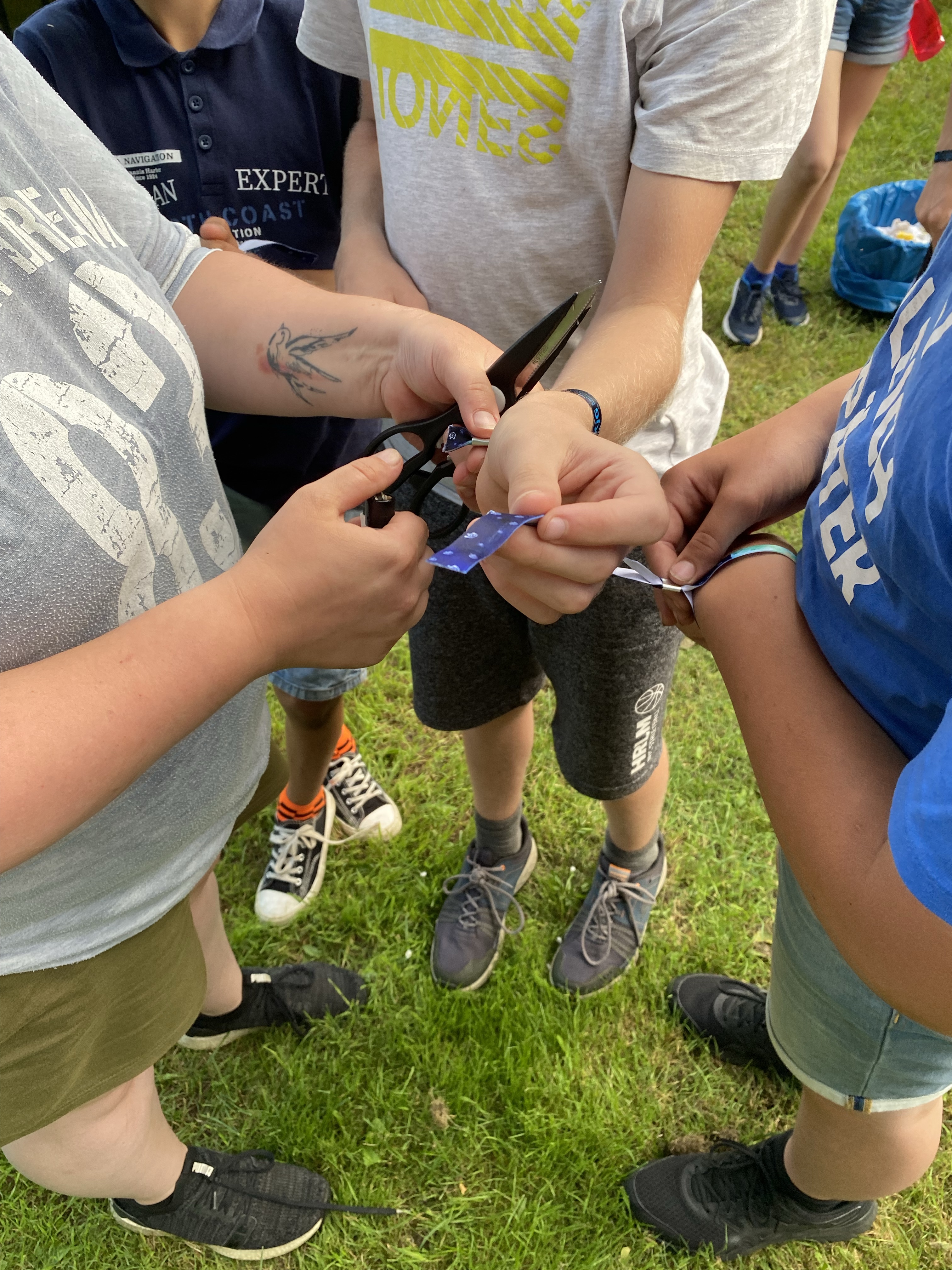 Das sonnige Wetter ermöglichte ein paar gemeinsame Runden mit den Leitern vor den Zelten und das Bändchen-Spiel. Ein kleines Quiz, bei dem die Kinder ihre Zeltlager Armbänder gewinnen konnten. Die sind dieses Jahr total schön. Wir bekommen sie fast jedes Jahr von der KjG Diözesanleitung in Paderborn. Unten könnt ihr euch ein Foto ansehen!