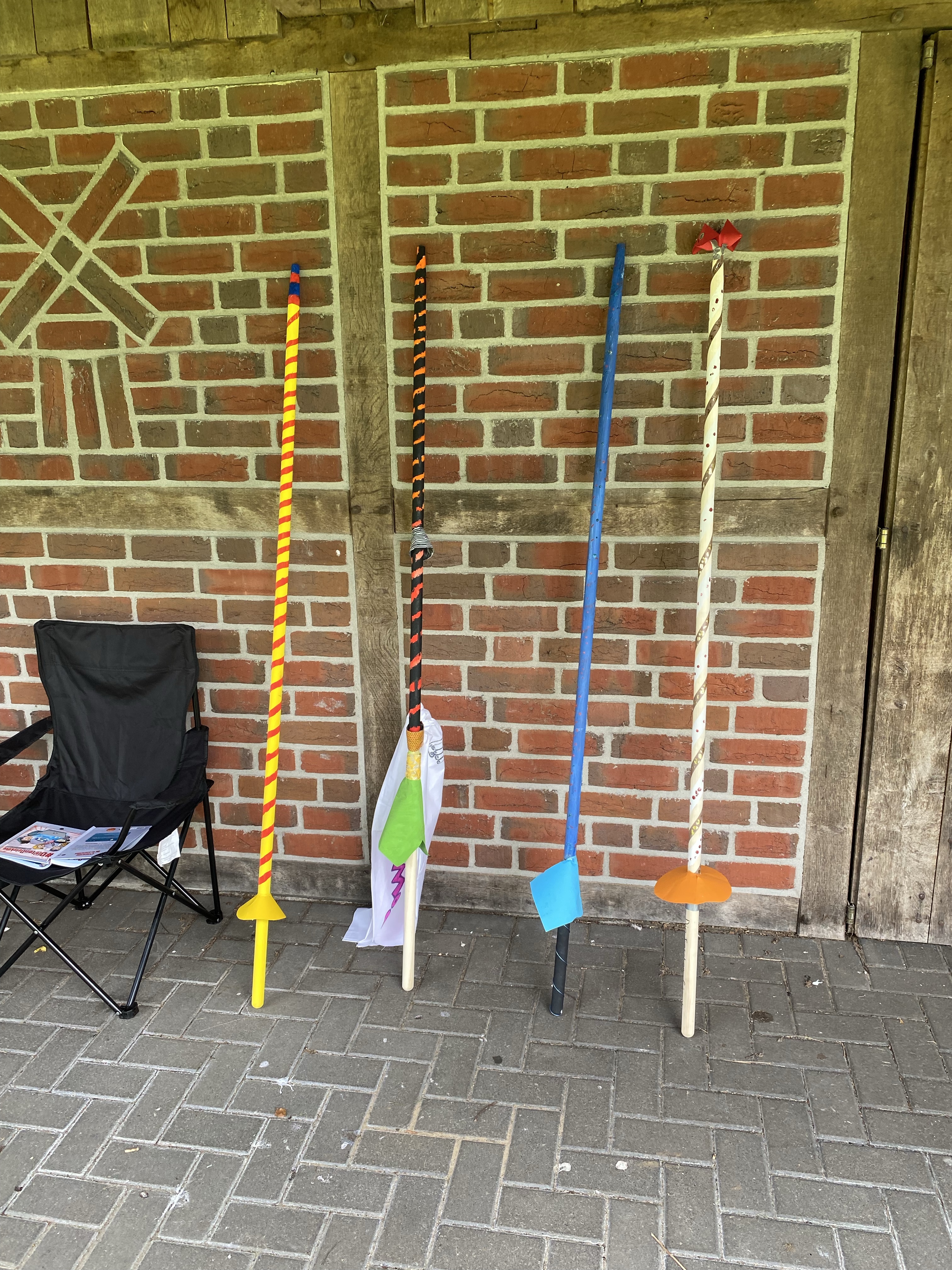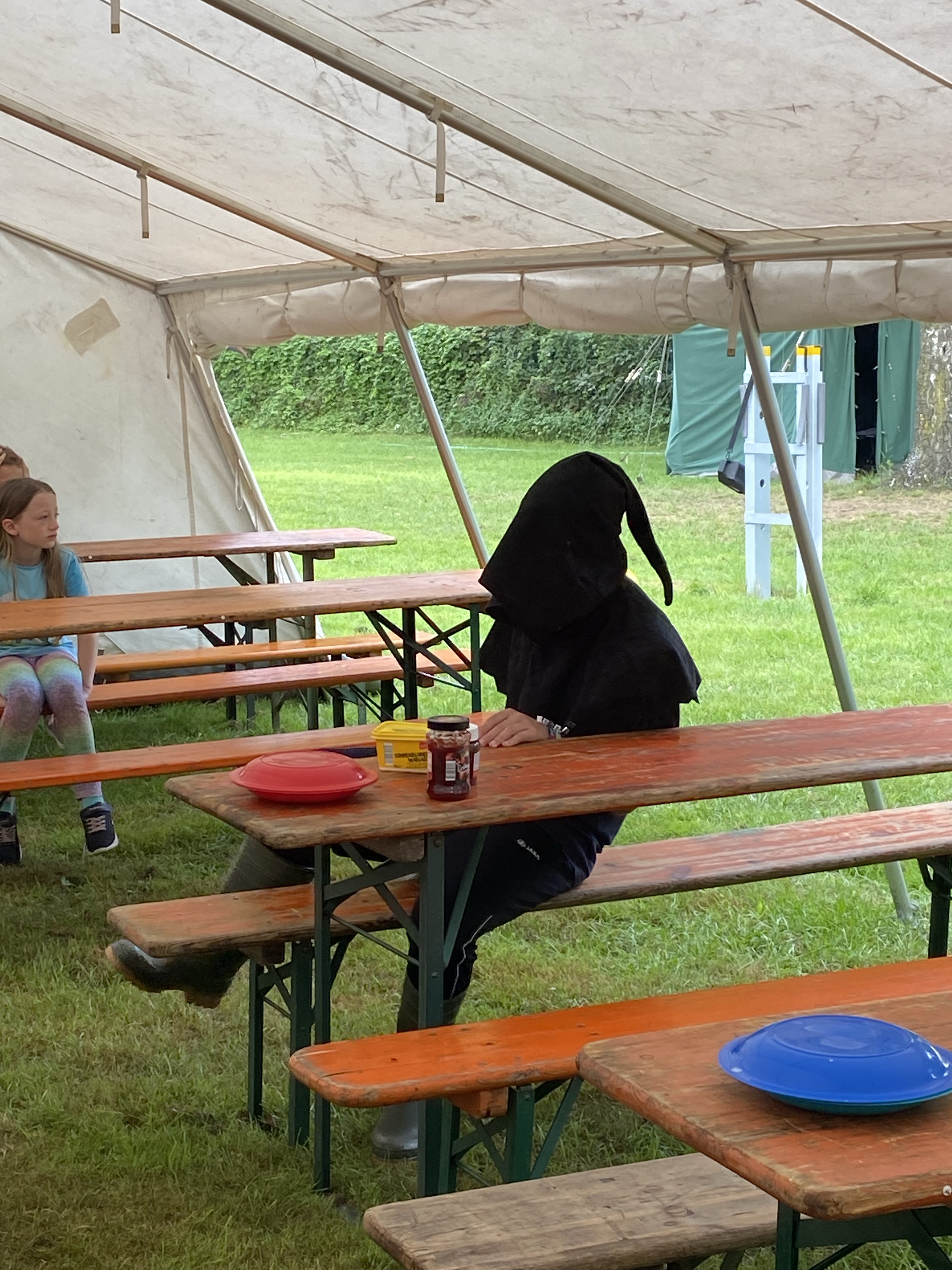 27.07.: GUTEN MORGEN GESINDEL! Gestern war Mittelalter-Tag. Die Kinder wurden mit wunderschöner Klampfen und Cembalo-Klängen geweckt, die Leiter*innen hatten die schönsten Outfits an. Kartoffelsäcke, leuchtende Kronen, edle Gewänder – alles war dabei! Nach dem Frühstück und den Diensten, wurden die Kinder zur ersten Aktion des Mottotages zusammengerufen: Lanzen basteln. Jede Gruppe hat einen Besenstil bekommen und alles was an Bastelkram im TD-Zelt zu finden war. Zur Freude der einen, zum Leid der anderen. Thema Glitzer und die jüngere Jungsgruppe… gespaltene Meinung. Die Lanzen sind aber am Ende alle ziemlich schick geworden! Und dann haben die jüngeren Jungs auch noch den Preis für die schönste Lanze gewonnen! 😂 Foto könnt ihr euch unten ansehen.