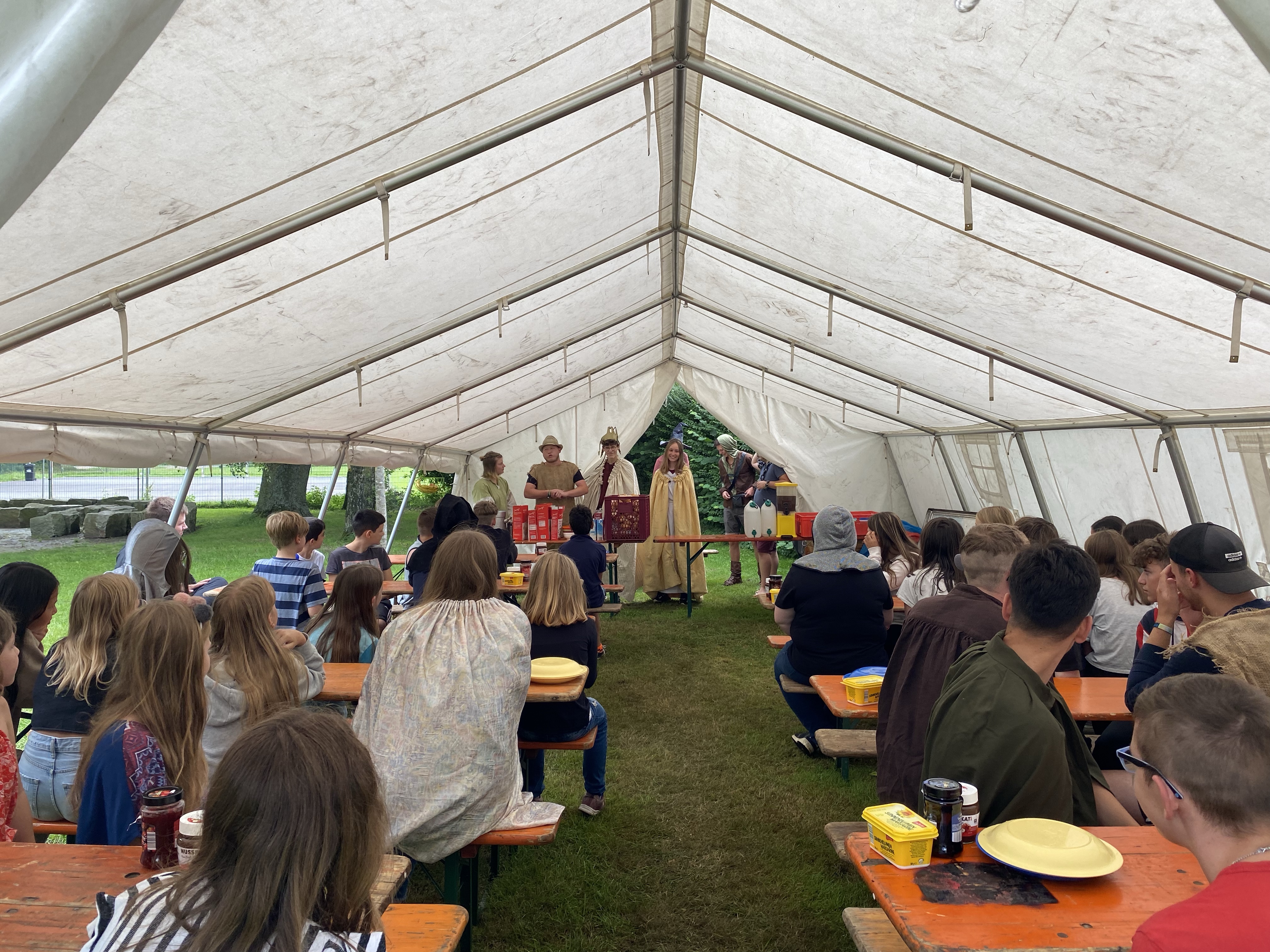 Schon wurde das Gesindel zum Mittagessen gerufen. Food of the Day (falls ihr es noch nicht in unserer Instagram-Story gesehen habt): Gulasch mit Krautsalat und Pellkartoffeln. So schnell waren die Töpfe selten leer! Am Nachmittag gab es dann ein Rittertunier. In verschiedenen Mini-Spielen, bei denen die schicken Lanzen involviert waren (und eventuell die ein oder andere kleine Verletzung vorprogrammiert war) traten die Gruppen gegeneinander an. Die edlen Ritter der ältesten Jungs haben das Tunier gewonnen und ebenfalls einen Preis bekommen. Überreicht von unserem König Jürgen aka. Johan und Königin Kristin! 👑🤴🏽👸🏽