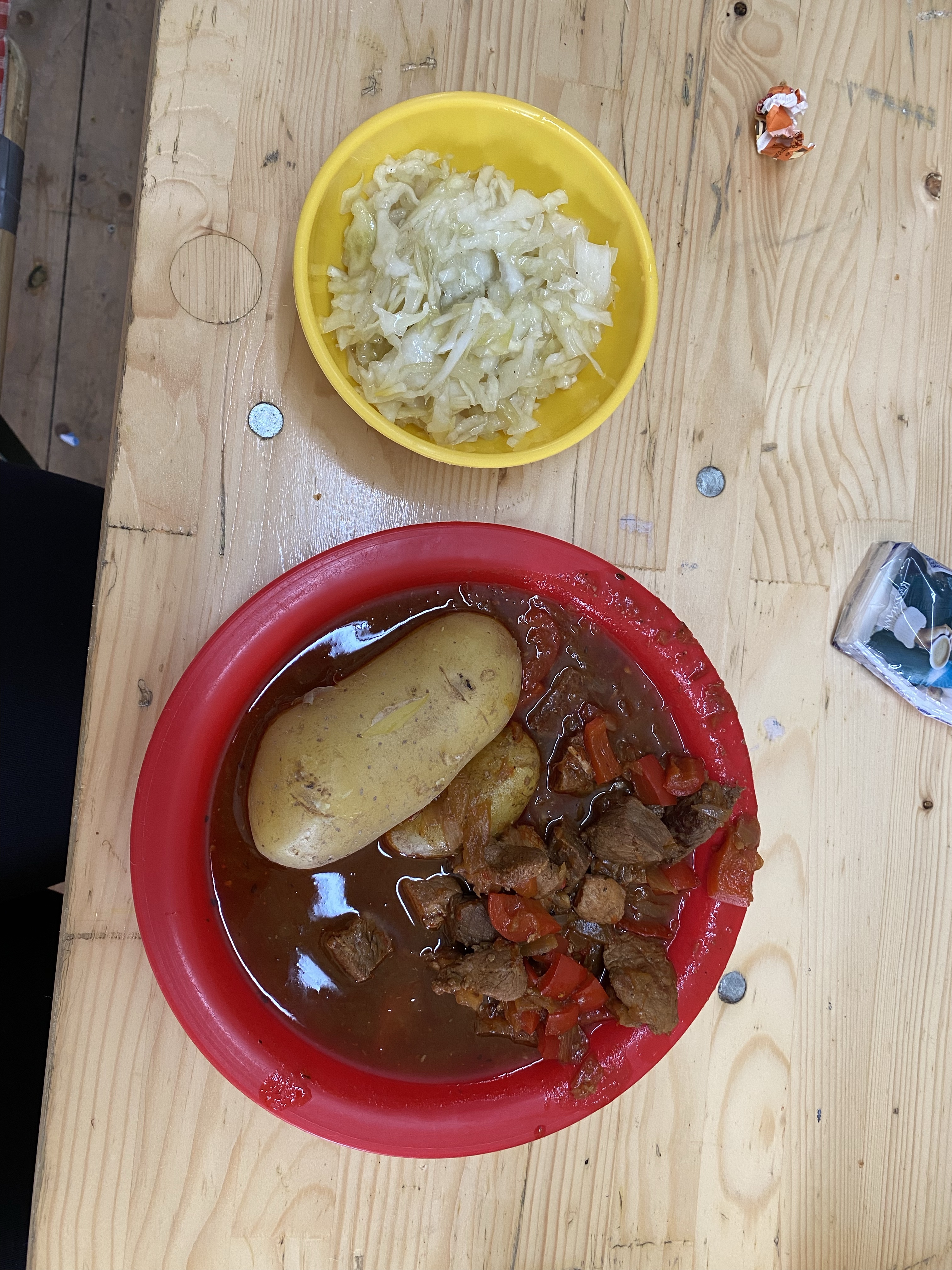 Statt mit „Guten Morgen, Aufstehen“, schallte es heute „EYY NACHTRUHE, RUHE JETZT UND LANGE SACHEN AN!“. Verwirrung. Zum Frühstück gab es heute kein Müsli und keinen Kakao. Es war auch keine Marmelade und kein Nutella auf dem Tisch, sondern Pizzasuppe. Nix Frühstück, Abendessen! Es ist nämlich Rückwärtstag! Rückwärts gehen war auch kurz Trend, bis ein Leiter beim fast in den Schweineeimer gefallen ist. Da haben die Kinder wieder schnell damit aufgehört. 😂🤢 Bevor es aber an den Tisch ging, fingen wir den Tag mit einem Fli für die Nacht an. Daraufhin folgten 3 Lagerfeuerlieder.