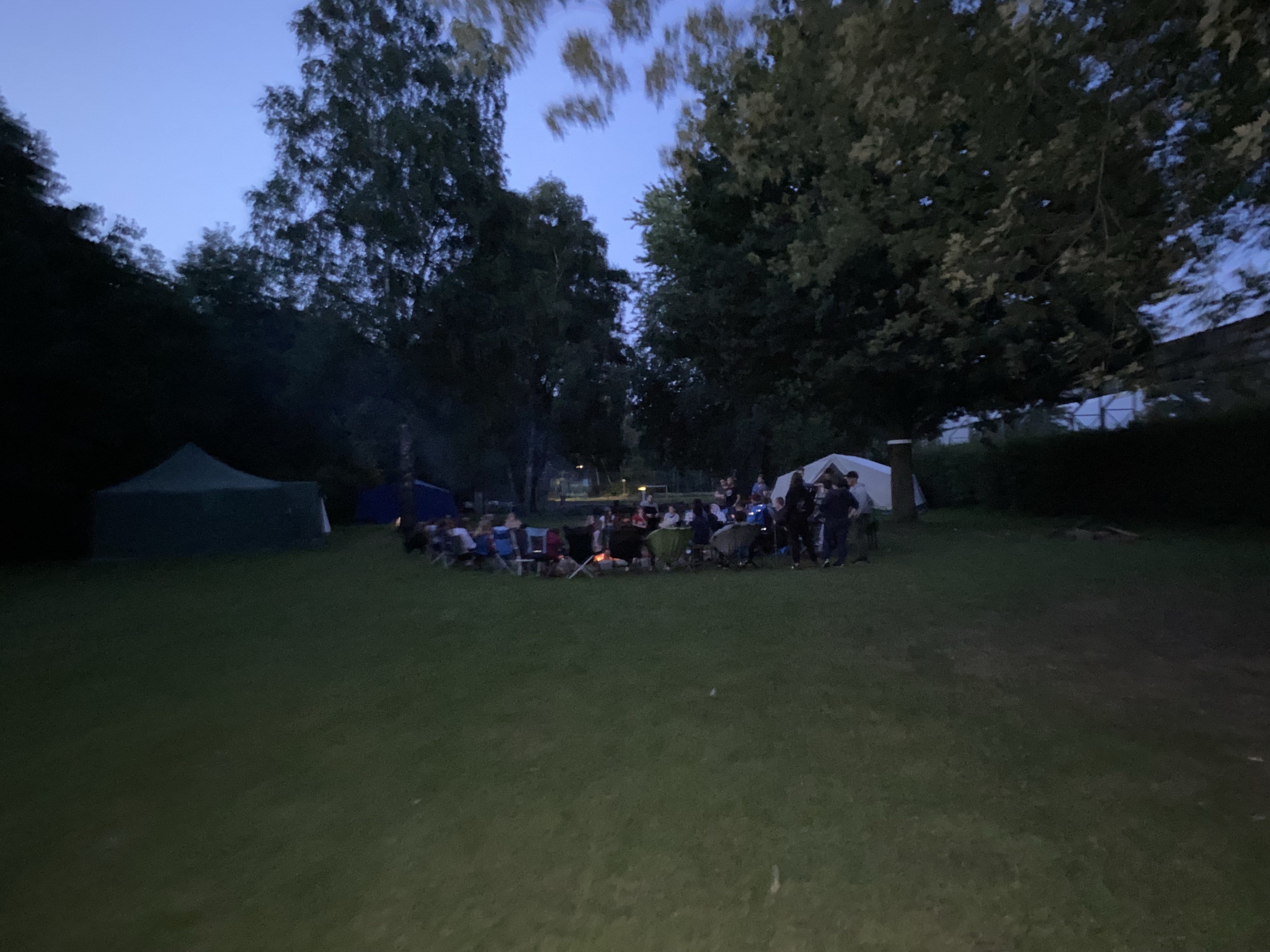 Wisst ihr eigentlich schon vom aller coolsten? Wir haben dieses Jahr den puren Glamping-Luxus: EINE SPÜLMASCHINE! Corona bringt halt auch Vorteile mit sich… Auch wenn es wenige sind! Trotzdem hat der Spüldienst eeewig gebraucht und das eigentlich geplante Spiel wurde direkt durch Sing-Sang am Lagerfeuer ausgetauscht. Und was soll ich sagen? Kein schlechter Start! Die Kinder haben Bock, sind motiviert und nicht so leise wie am Anfang des letzten Lagers. Ab 22:30 Uhr war (ausnahmsweise) erst Nachtruhe. Natürlich kein Grund ins Bett zu gehen.