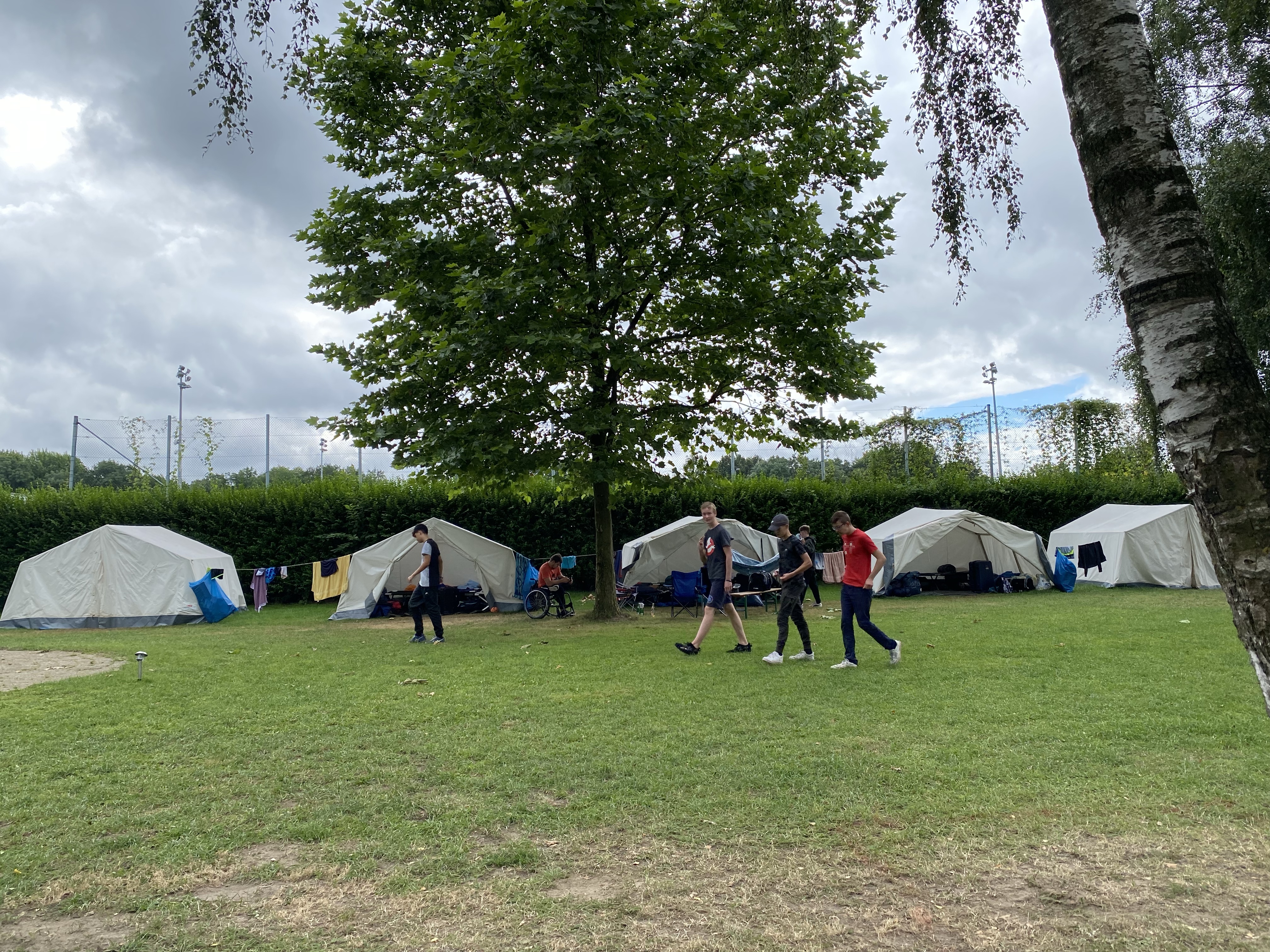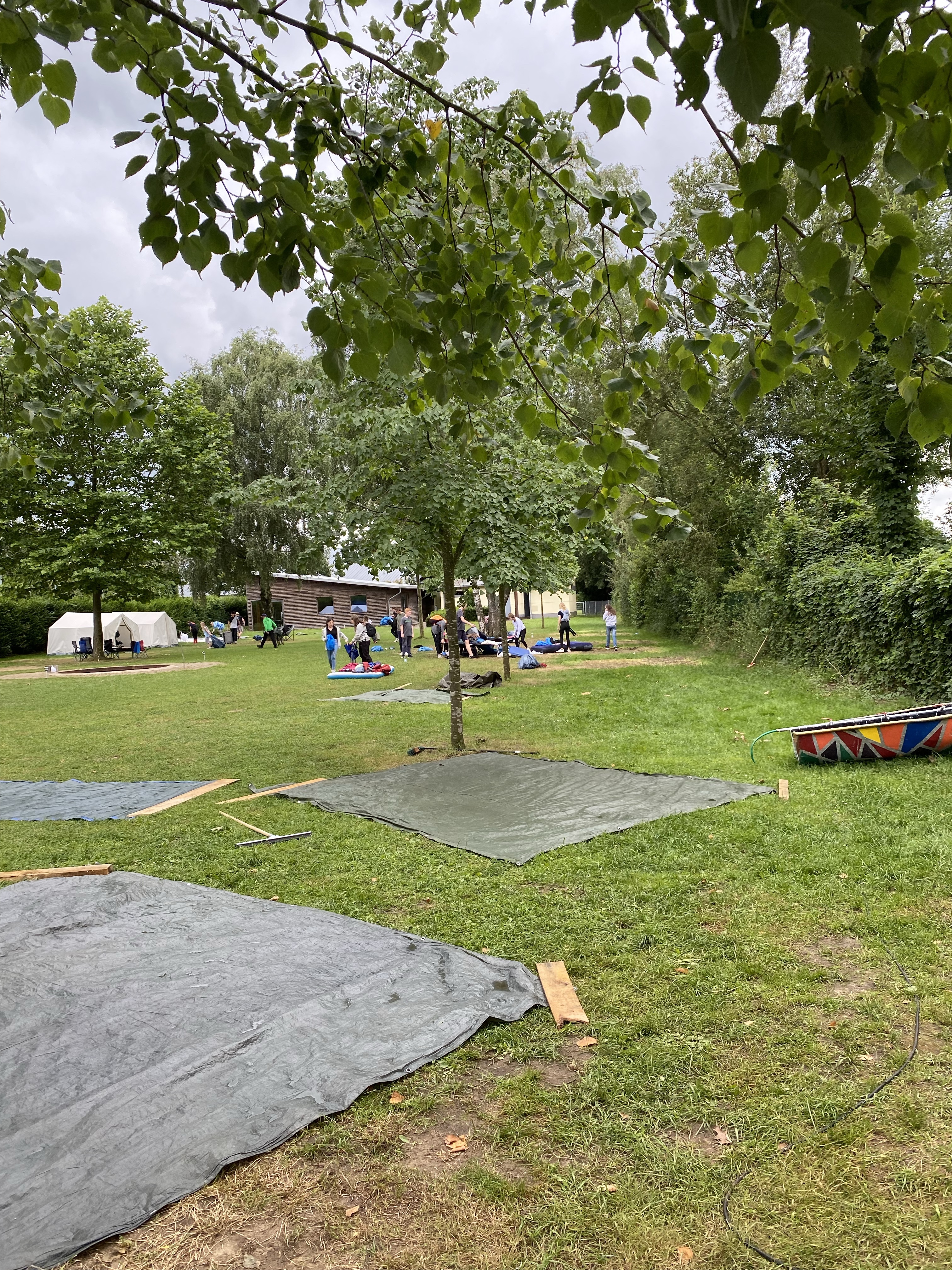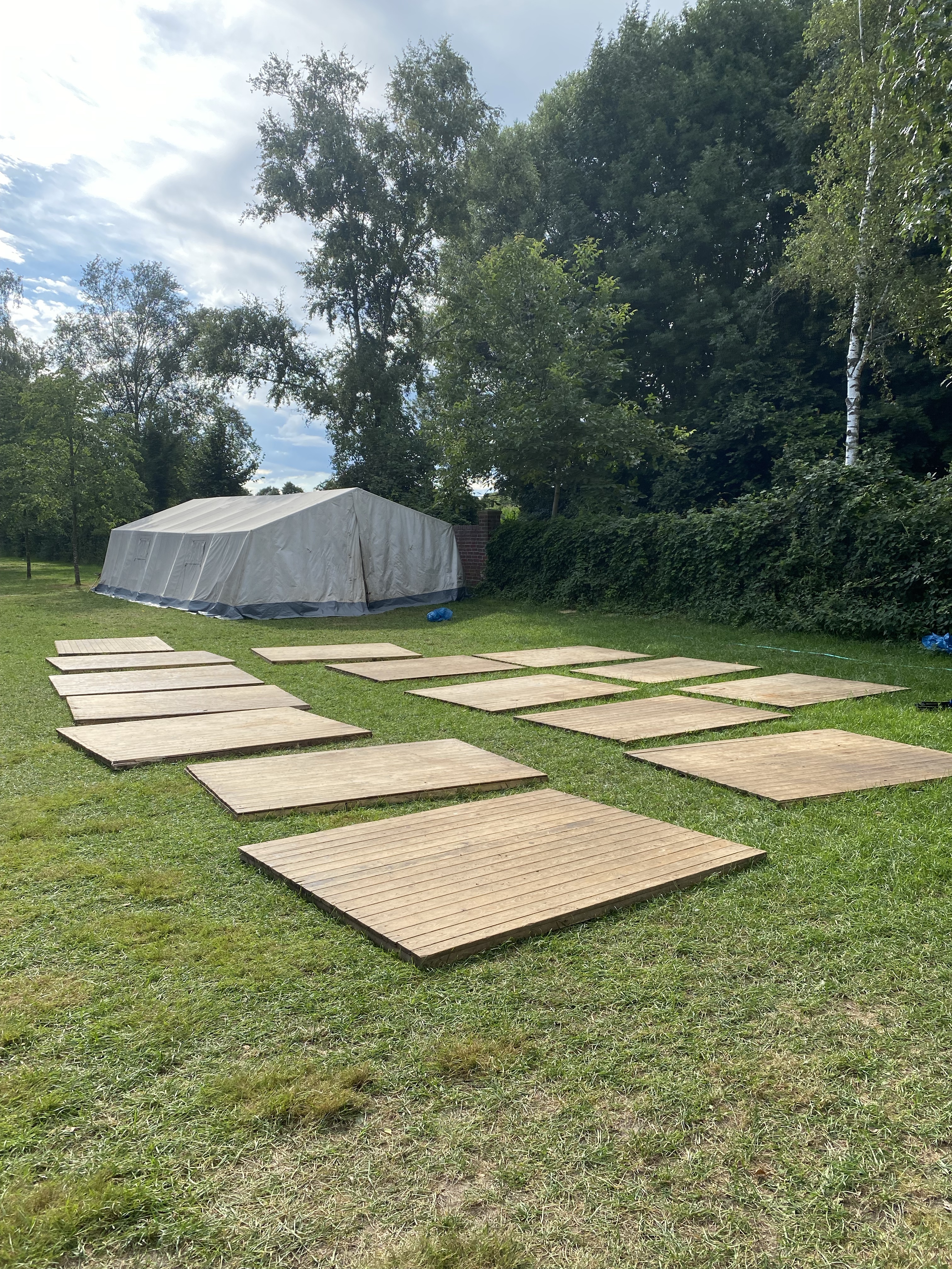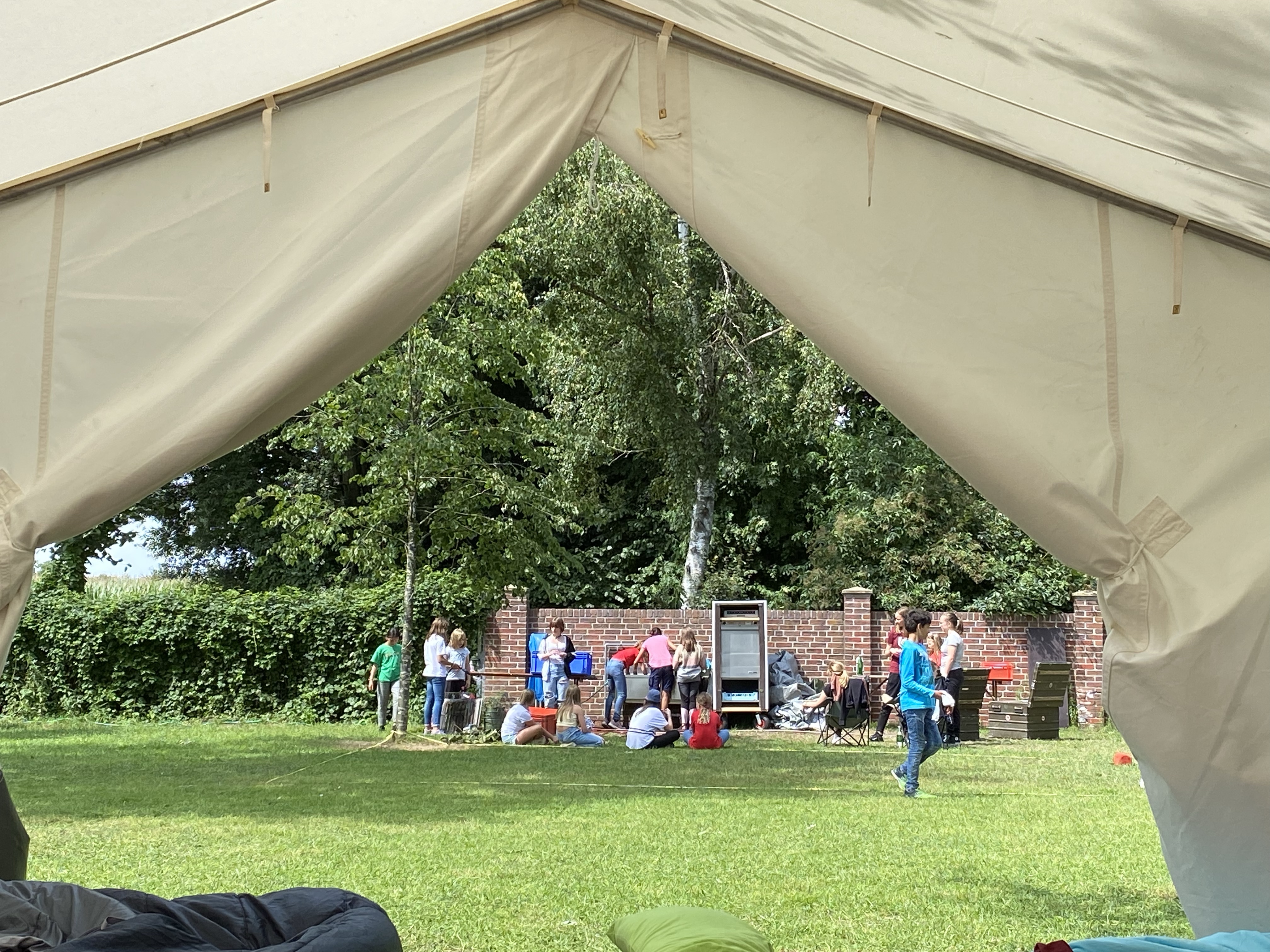 Wir sind gestern, nach teilweise 1,5 Stunden Stau in Lüdenscheid, gut angekommen. Leider gestaltete sich das LKW Abladen auch etwas schwierig. Der Weg zum Platz war so eng, dass wir alles etappenweise vom LKW in den kleinen Anhänger getragen und mit dem Anhänger zum Zeltplatz transportiert haben. Anstrengend! Aber Abends standen immerhin ein paar Zelte und alle Sachen waren erstmal verstaut. Heute Morgen haben wir die Kinderzelte aufgebaut, ein paar „kleine“ (2 weitere Einkaufswagen voll) Einkäufe gemacht und jetzt warten wir wohl auf den Bus, der Morgen irgendwann gegen Nachmittag hier aufschlagen wird. Wir sind vorbereitet und freuen uns total auf die 2 Wochen hier in Vreden!