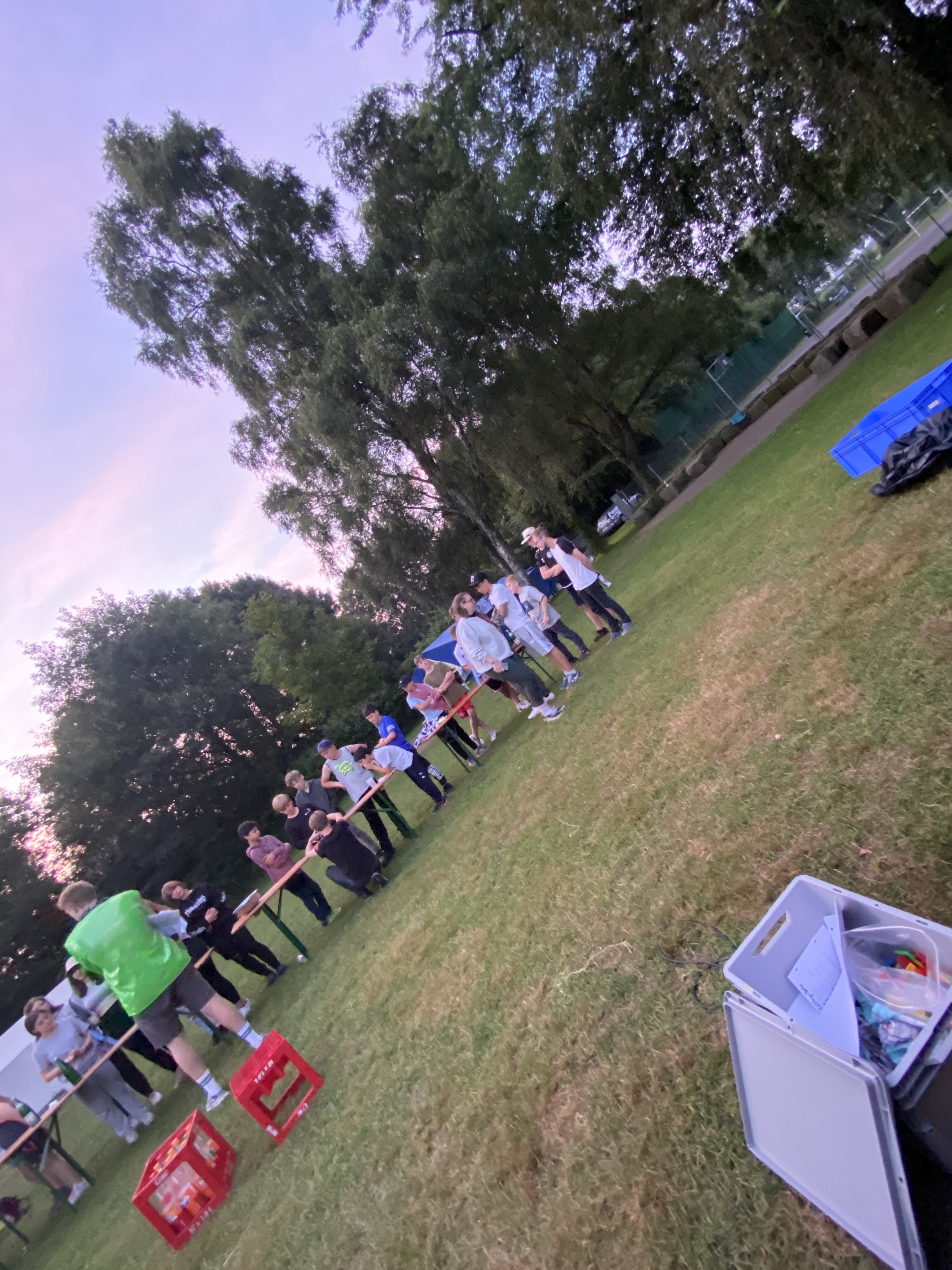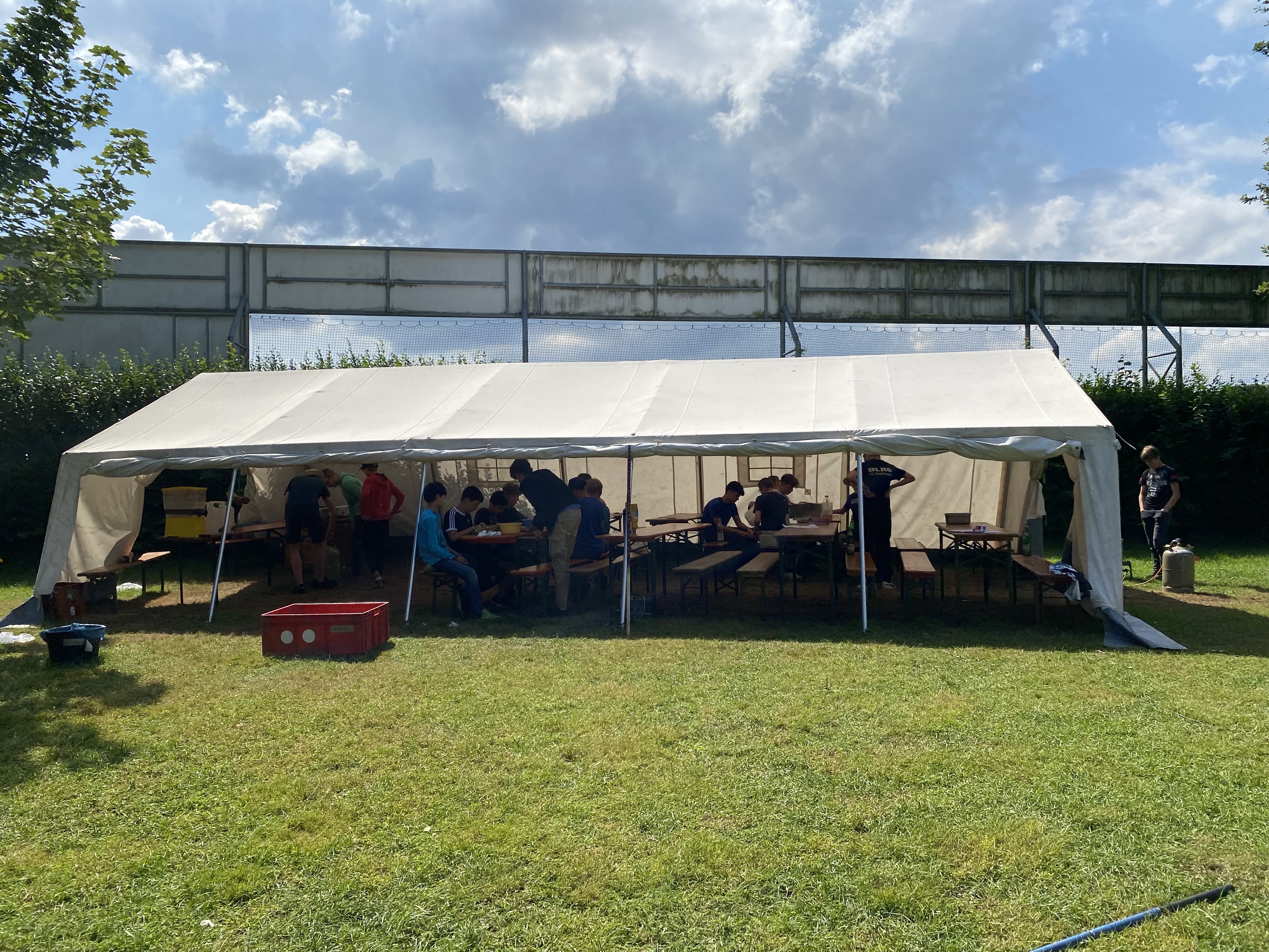 Ab ins Essenszelt. Unsere Lang-Aufbleiber vertrieben sich den Abend mit UNO, Werwolf, Brett- und Kartenspielen. Und das LT? Das LT vertrieb sich den Abend etwas anders: mit Kinder und Leiter*innen fürs Schwimmbad und den Coroni-Drive-In anmelden. Was ein Akt! Es wäre untertrieben zu sagen, wir hätten nur eine Stunde gebraucht… und das alles für 2,5 Stunden Schwimmbad…Dank der gebliebenen und heißgeliebten Corona-Richtlinien. Ob es da eigentlich gut war?