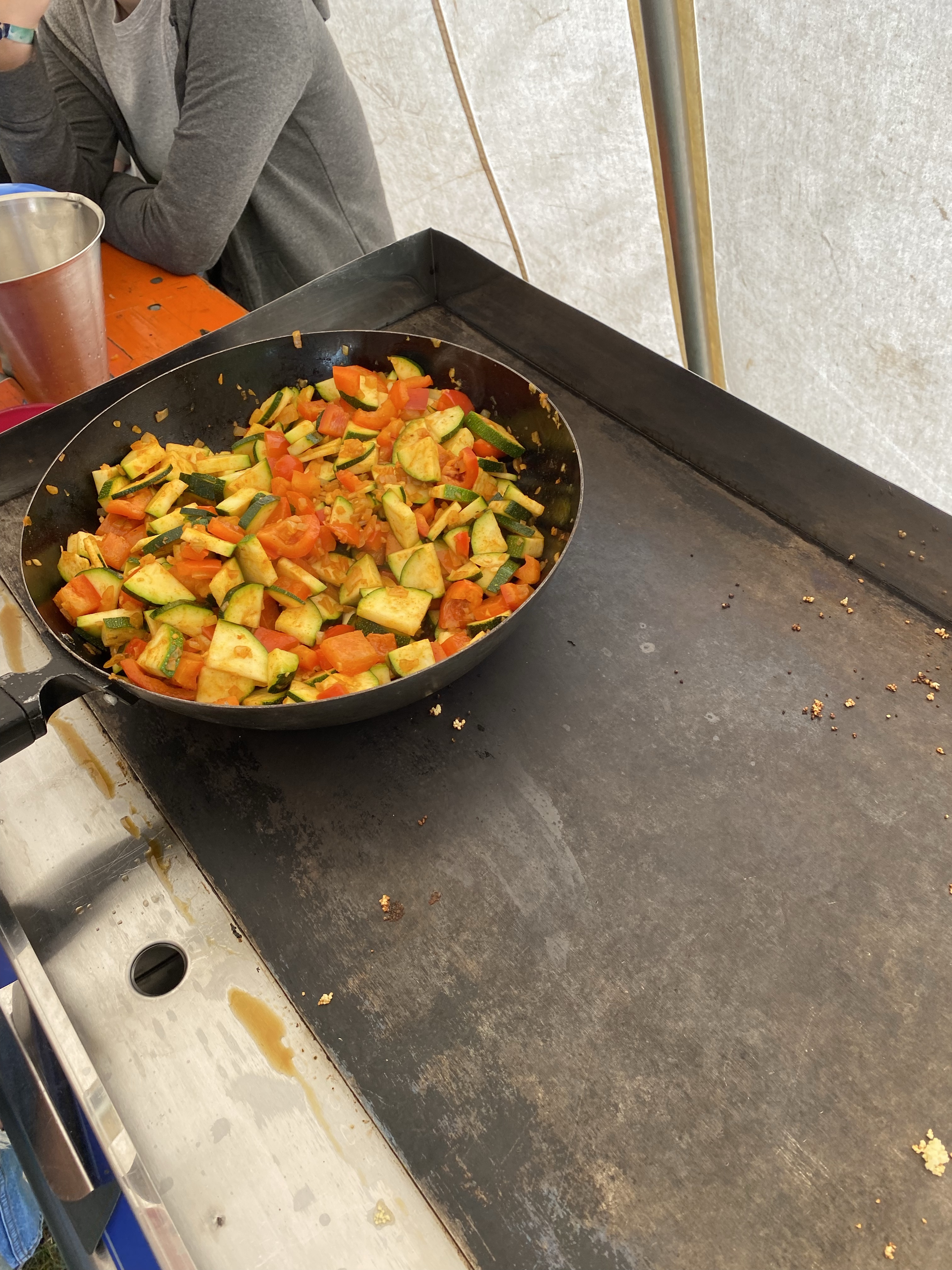 Die Kinder haben sich mehr Programm gewünscht, also direkt im Anschluss ein Meteoritenenschlag aka. Völkerball Turnier. ☄️ Gewonnen haben, wer hätte es gedacht, die ältesten Jungs. 🙄 Aber alle waren mit vollem Einsatz dabei! Zeit für eine ordentliche Mahlzeit, nach der ganzen Bewegung… aber dann auch noch fleischlos. Ob das gut gegangen ist? O-Ton des Lagerrats: „Marco war on Fire!“ und wenn unser Leiter Marco beim Essen on Fire ist, soll das ganz schön was heißen!!! Es gab Mac&Cheese, also Käsemaccaroni, mit Regenbogensalat – reichlich Gemüse. 🥦🌶🍆🥕