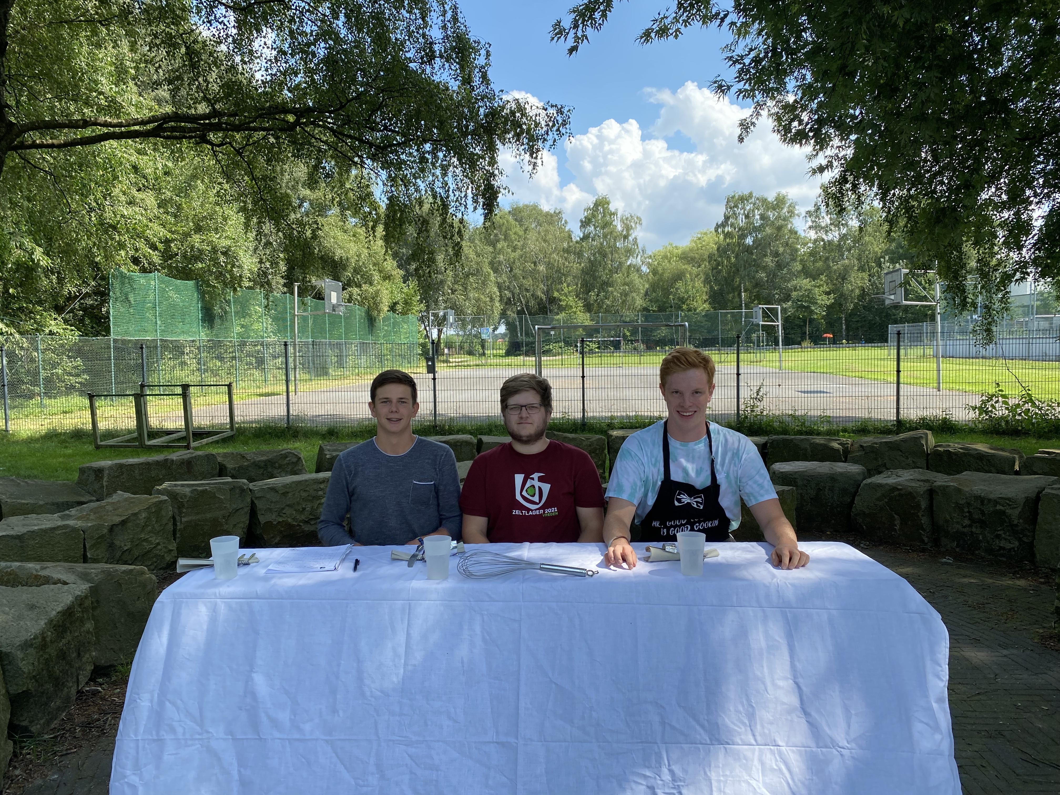 Als ich mit den Leiter*innen durch die Stadt spazierte und versuchte ein paar ruhige Minuten zu genießen sahen wir plötzlich ein bekanntes Gesicht: VIKAR JAY?? Und PASTOR LEBER? HÄ? Da sind die einfach ohne was zu sagen mit der Frauengemeinschaft nach Münster gefahren und uns zufällig über den Weg gelaufen! Wie lustig ist das denn? Zeltlager ganz ohne Pastor ist wohl dieses Jahr doch nicht!
