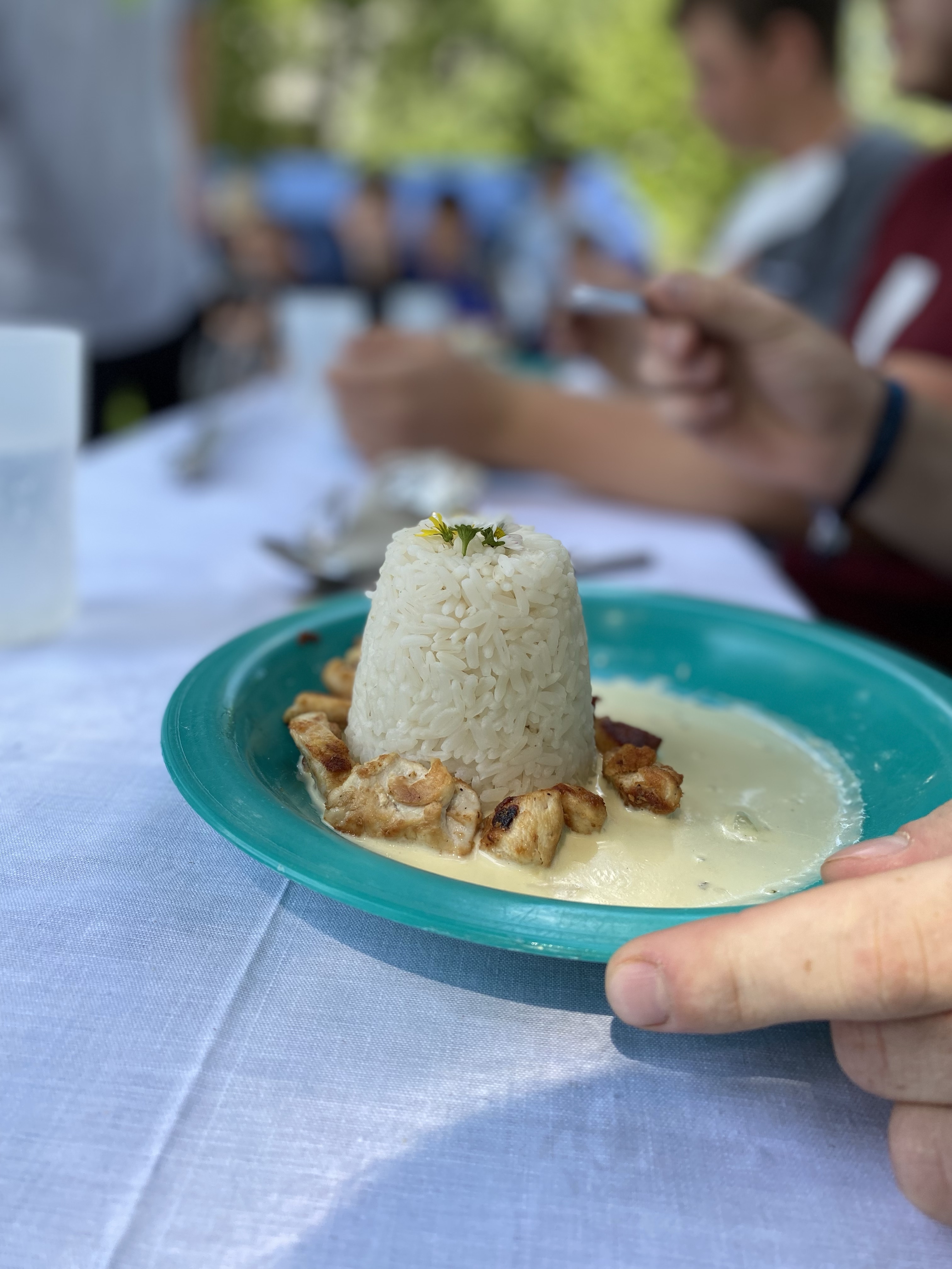 Nach dem Frühstück ging es weiter mit Ostermusik und Schlag auf Schlag zum amerikanischen Memorial Day. Die Kinder wurden in Gruppen eingeteilt und hatten 30 Minuten Zeit eine Flagge für Capture the Flag zu gestalten. Danach startete direkt das Spiel und endete mit einem BBQ zum Mittgessen. Gott sei Dank, her mit dem Fleisch! Es gab Hähnchen, Würstchen, Grillkäse, vegane Variationen, Kartoffel-& Nudelsalat. Es wurde kein Stück übrig gelassen.