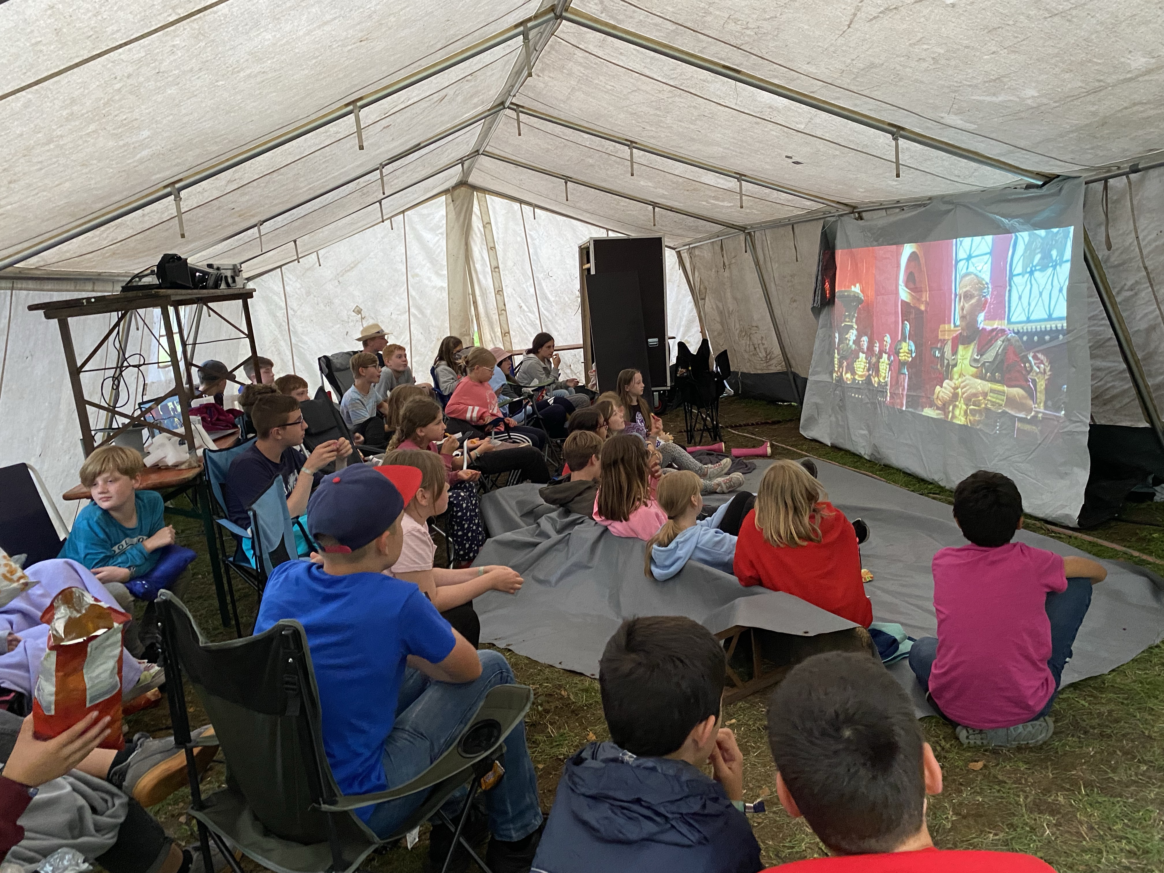Neuer Tag, neues Motto! Heute: Film & Fernsehen. Mit Filmmusik der Große Blockbuster sind wir in den Tag gestartet und haben wieder normal, ohne Pizzasuppe, gefrühstückt. Nach den Diensten ging es mit dem Programm los – dem Morgen gehörte die Küchenschlacht! Jede Gruppe bekam ein paar Zutaten und musste für sich und die Jury, bestehend aus unserem Küchenteam, etwas leckeres zu essen kochen. Die Teller konnten sich echt sehen lassen, doch laut unserer Fachjury war es mehr Schein als sein. 🥴 Gewonnen haben die älteren Mädchen mit ihrem Couscous Gemüse Gericht. Nachdem alle gesättigt waren, ging es weiter mit dem Programm. Die Kinder hatten den ganzen Nachmittag Zeit einen Auftritt für das Supertalent zu planen. Er musste 8-10 Minuten lang sein! Nichts leichter als das! In kürzester Zeit wurde ein Programm auf die Beine gestellt, welches sich bei der großen Show am Abend wirklich sehen lassen konnte. Es gab eine Zauberaufführung, eigene Versionen von Rotkäppchen und Titanic und und und! Auch hier gingen wieder die ältesten Mädchen als Sieger vom Platz – wieder bewertet von unserer Fachjury David, Max und Luke. Das straffe Programm ging danach direkt mit Kino weiter. Die Leiter*innen hatten etwas Stress im Nacken, die Nachtwanderung stand an und deshalb durfte der Film nicht so spät starten! Im Kino lief diesmal „Asterix und Obelix im Auftrag ihrer Majestät“. Gegen 22:30 Uhr starteten die Kinder dann vom Platz aus zur Nachtwanderung. Und was soll ich sagen? Vollkatastrophe! Das Münsterland ist schlichtweg ungeeignet für gescheite Nachtwanderungen! Kein Wald und durch ein Industriegebiet sind sie gegangen. 😂 Überall Sportplätze, auf denen noch Fußballer unterwegs waren und etwas verwirrt guckten, als wir uns in den Büschen versteckten, mit Masken, Grablichtern oder Kochtöpfen irgendwo am Straßenrand saßen. 😂 Und gruselig fanden es die Kinder auch irgendwie nicht, wenig schreie und Schocker. Naja der Wille war da!