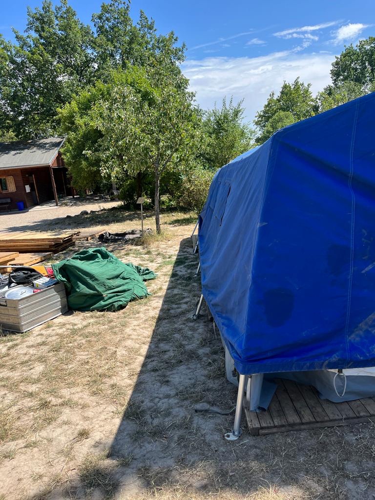 Freunde, da sind wir wieder! Das Zeltlager steht vor der Tür, also für die Kinder – wir sind ja schon da! Mittlerweile stehen alle Zelte und alles ist so weit eingeräumt.