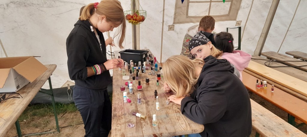 Das Programm startete wie schon angekündigt gelassen. Mit freiwilligen AGs: endlich wieder Nagellack, Werwolf und sogar einigen Special-AGs! Marco hat mit seiner Jungsgruppe ein krasses Workout gemacht. Danach haben die Jungs direkt einen Platz in der nächsten AG gebucht: Meditation. Und so findet man die von dem Workout verschwitzen Jungs, zum Beispiel Timo R. auf dem Boden auf ner Luftmatratze meditieren ähhh wenn man einen kurzen Powernap so nennen kann. 😴