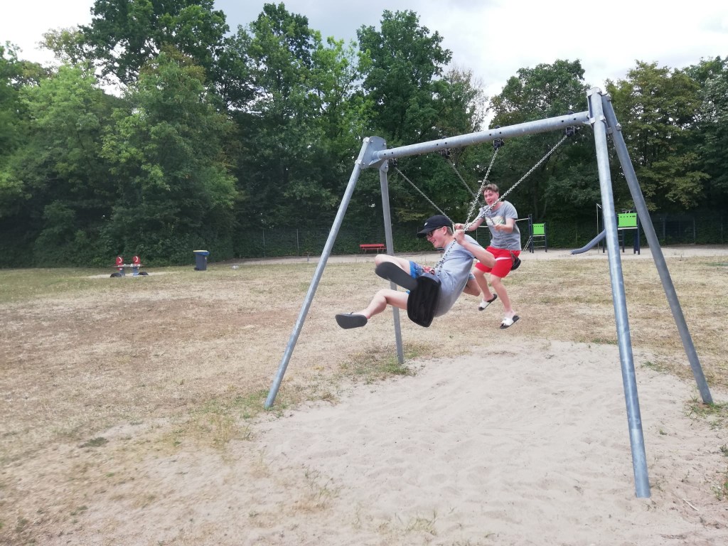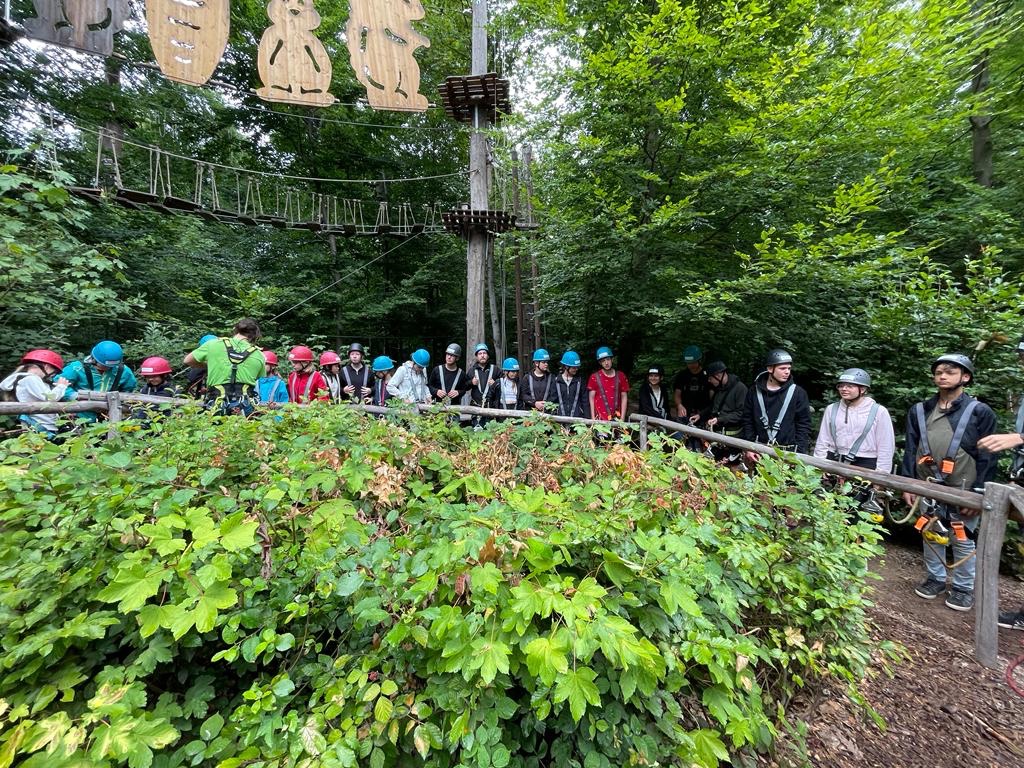 Um 14 Uhr ging es dann weiter. Mit einer Neuheit: Ein zusätzlicher Ausflug! In den Kletterpark Neroberg! Nach einer halben Stunde Fahrt quer durch die City sind wir angekommen und haben uns in luftige Höhen geschwungen. War wirklich luftig hoch. Auch für die Leiter*innen. Die sind auch ins schwitzen gekommen, hier bleibt keiner verschont! Die Kinder waren jedenfalls überzeugt – durchweg positives Feedback. Müssen wir uns für die Zukunft merken.