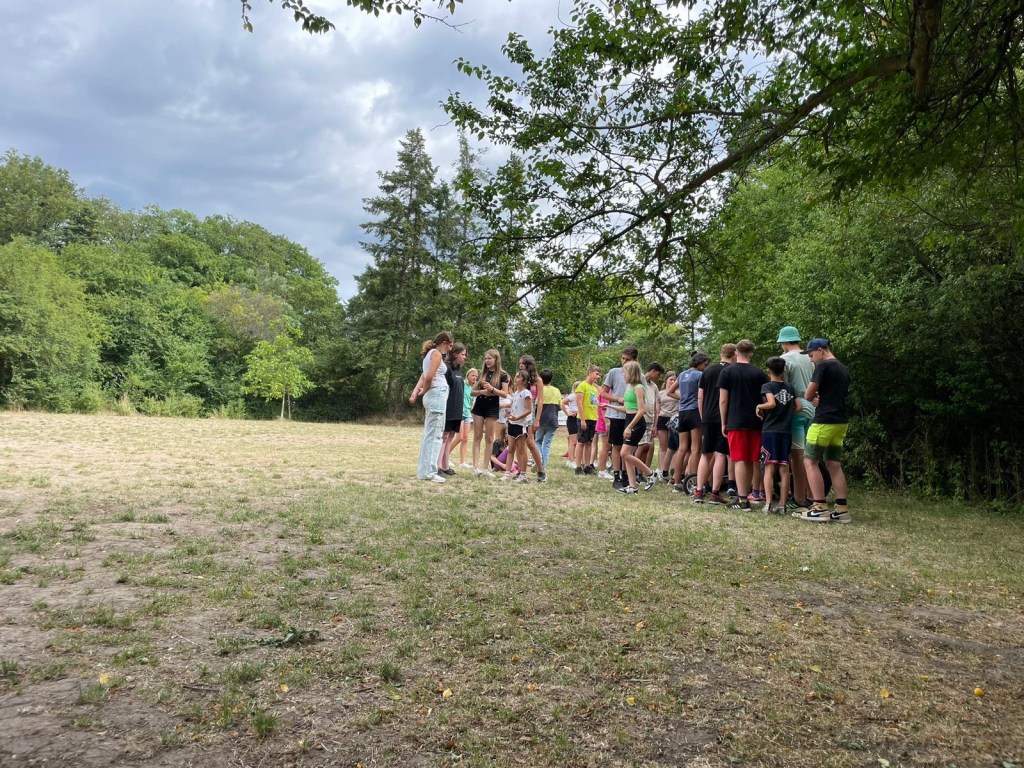 Danach wurde es kurz ganz still, denn das erste Spiel wurde gespielt. Die Kinder mussten sich, ohne zu sprechen sortieren. Nach Größe, Name, Alter, Zeltlagerjahren und und und. So erfährt man direkt mal das ein oder andere über die Kinder und kommt ein bisschen in Schwung!