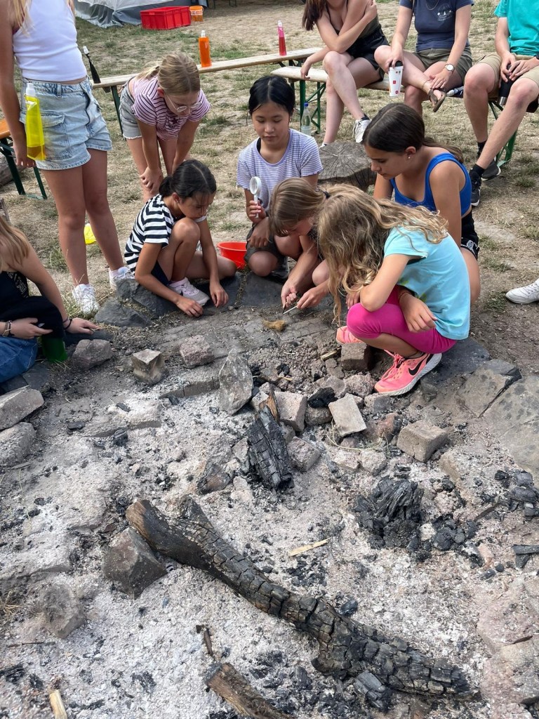 Doch bevor es ans Lagerfeuer ging gabs noch eine dicke Spülparty. Da so viel zu Spülen war, hat nicht nur eine Gruppe gespült, sondern fast das ganze Zeltlager! (Eventuell wurden die ein bisschen mit Süßigkeiten aus dem Kramladen bestochen 😂) Aber alle hatten extremst viel Spaß. Es wurde getanzt, Songwünsche konnten geäußert werden und der Banger „Jungs gegen Mädchen, Mädchen gegen Jungs“ lief bestimmt 8 mal! 🫶🏼