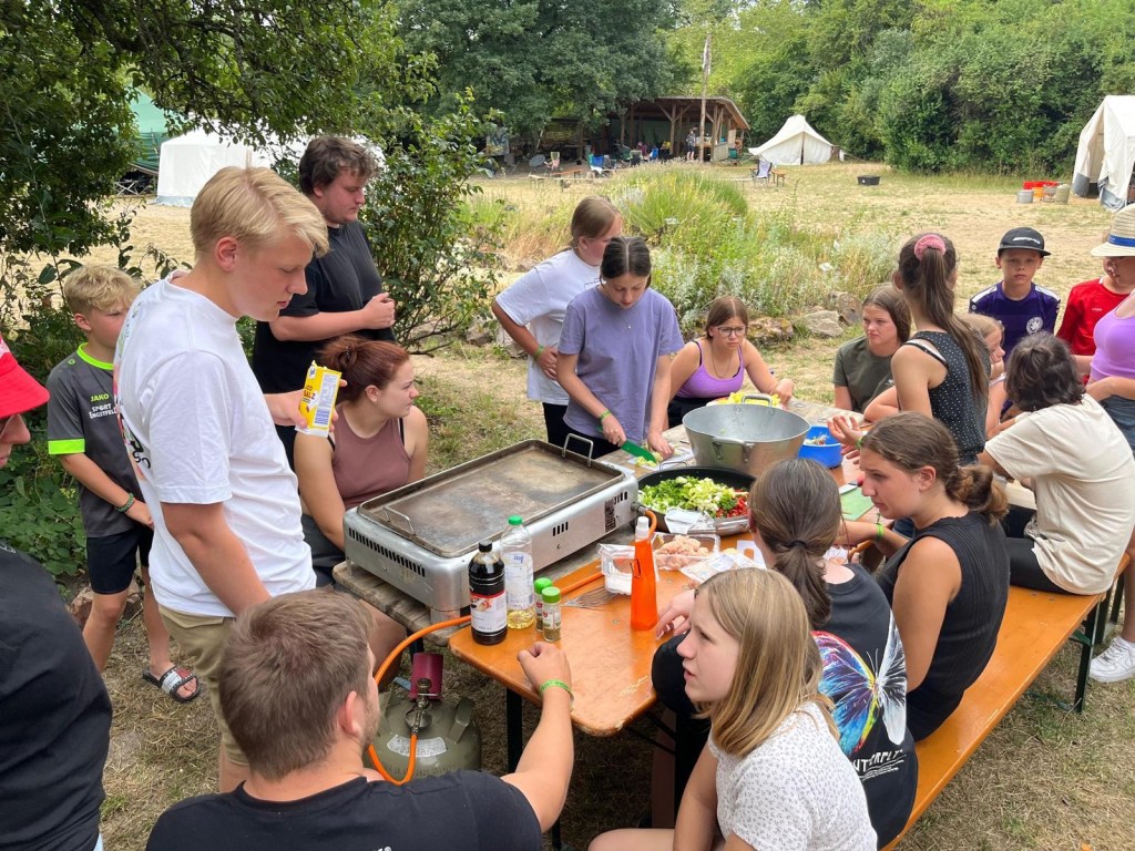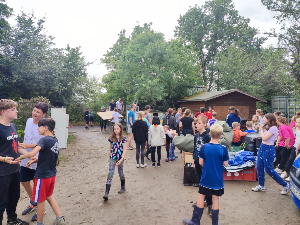 Während des Essens kamen dann die schon angekündigten über 100 Kinder unserer Nachbarzeltgruppe an. So viele Kinder… Wie soll man die denn von Unseren unterscheiden? Hoffentlich nehmen wir am Samstag kein falsches mit nach Drolshagen. 😂😂