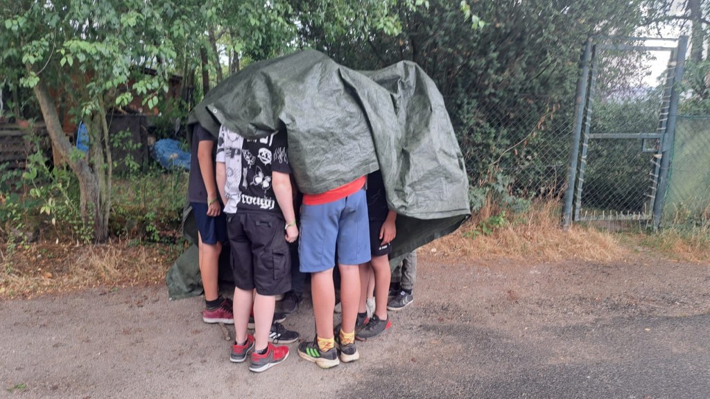 Aber schnell schnell!!! 🏃🏽♀️🏃🏼♂️ Danach öffnete die Lagerbank und der Kramladen und irgendwie ging dann auch der Survivaltag weiter: Einen Supermarkt finden ohne Handy und wieder zurück zum Platz finden – ist ne Challange! Aber alles kein Problem für unsere Survivalexperten: vollbepackt mit allerhand Zeug kamen alle Kinder wieder gut am Zeltplatz an.