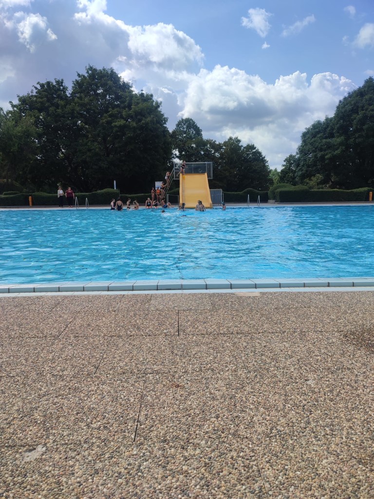 Um 10:30 Uhr traten wir unsere Reise an: ab ins Kallebad, ein von in Wiesbaden wohnenden Besuchern des Zeltlagers empfohlenes Freibad direkt um die Ecke.