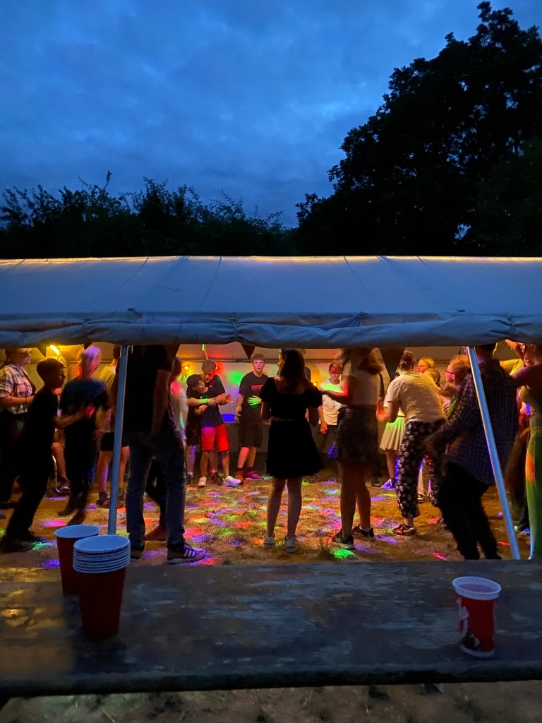 Bis zur Nachtruhe, heute verspätet um 22:30 Uhr, wurde dann weiter getanzt. Eine Nebelmaschine hatte unser Partyzelt übrigens inklusive. Der Boden war vielleicht so trocken, dass wir alle ganz schön eingestaubt wurden. 😂 einige haben sich danach noch an das improvisierte Lagerfeuer gesetzt – immerhin ist Sonntag Bubu-Tag, also ausschlafen und bis 11:30 Uhr frühstücken! 🥳