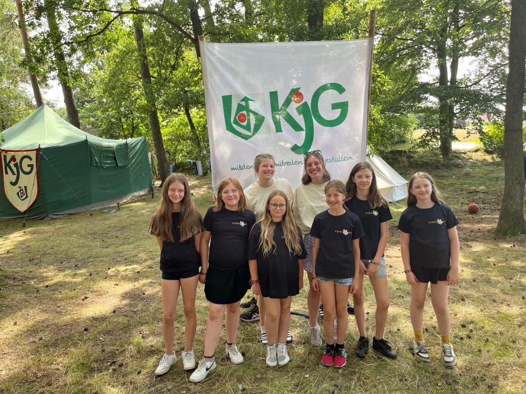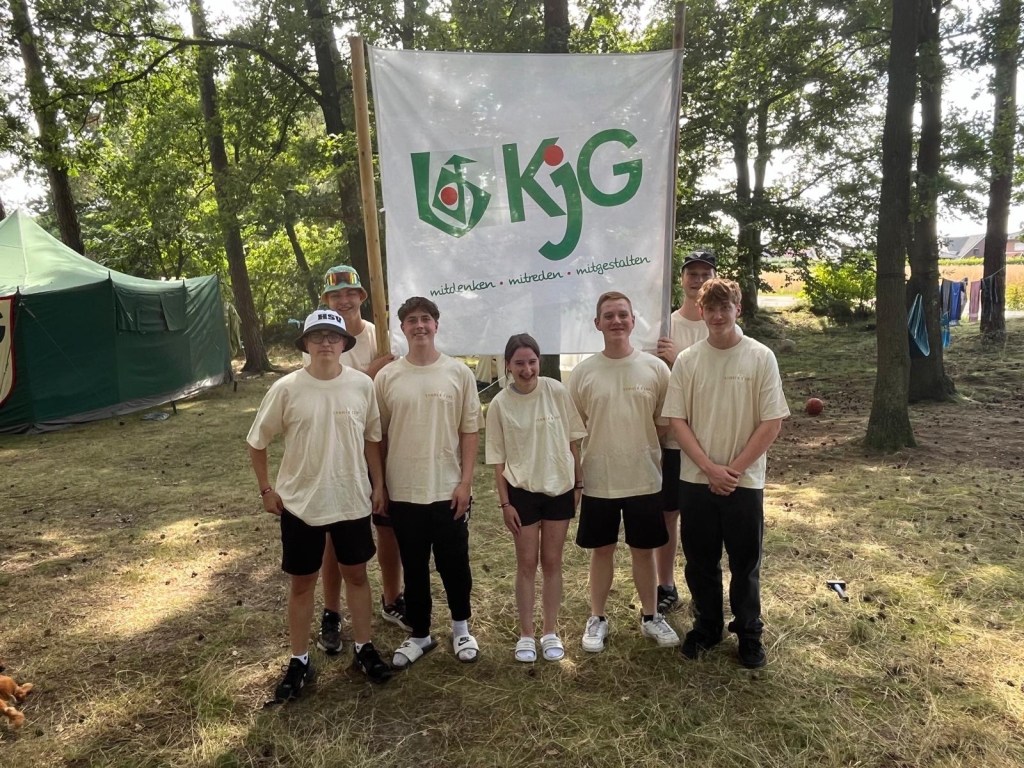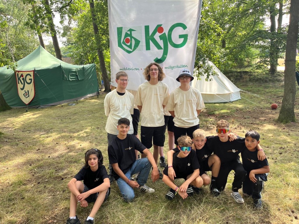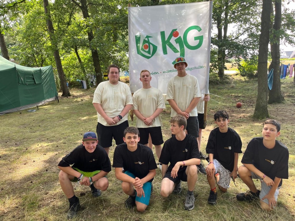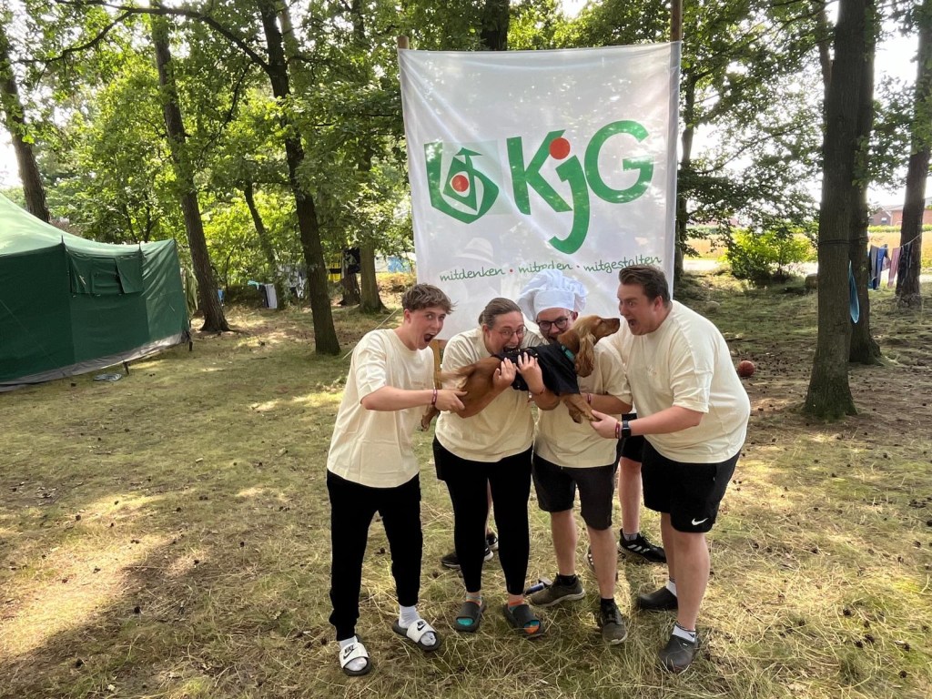 Wie angekündigt haben 6 tapfere KjGler aus Kloster Oesede versucht unser Banner zu klauen. Ja, sie haben es nur versucht. Die Kinder konnten sie sehr gut dran hindern, einfangen und in Gefangenschaft hinters Küchenzelt bringen. Ob das die richtige Bestrafung war? Nach einer wilden Nacht und einem guten Austausch bei dem so einige Zeltlagertraditionen den Fremden begebracht wurden, sind die Jungs aus Kloster Oesede heute morgen wieder nachhause gefahren.