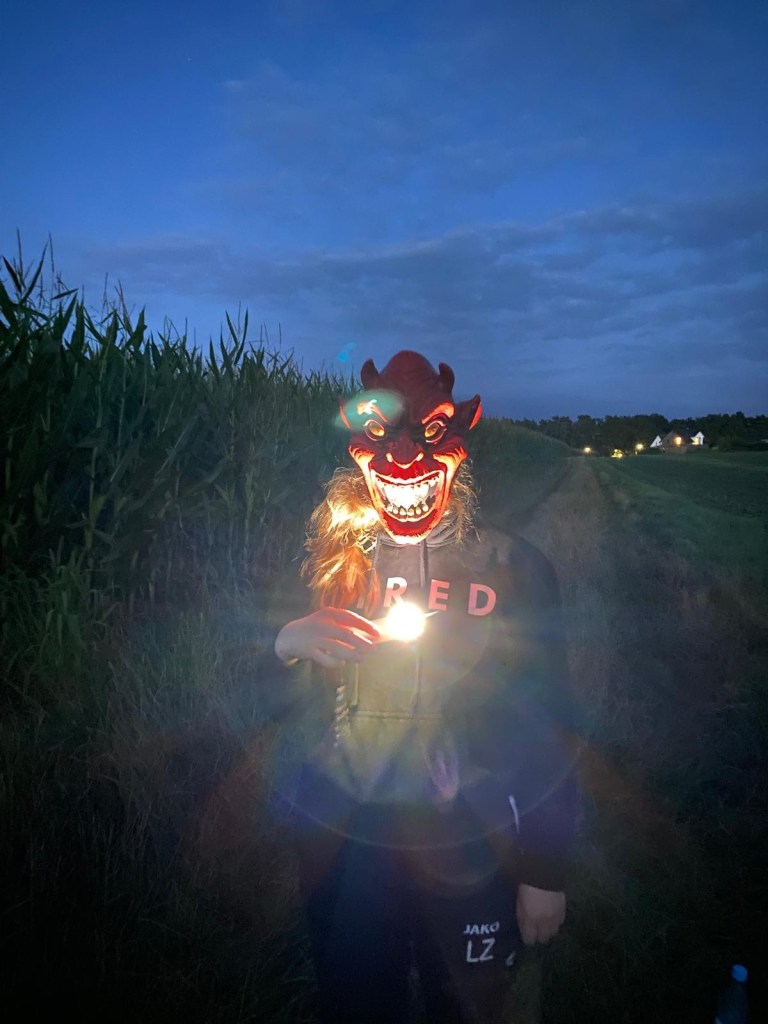 Aber ich glaube die Kinder wollten einfach nur nicht sagen wie sehr sie sich gegruselt haben. Wir als Erschrecker*innen hatten auf jeden Fall unseren Spaß. Die Kinder wurden Gruppenweise durch die dunkle Eggermühler Nacht geführt und ab und zu erschreckt. Spooky!