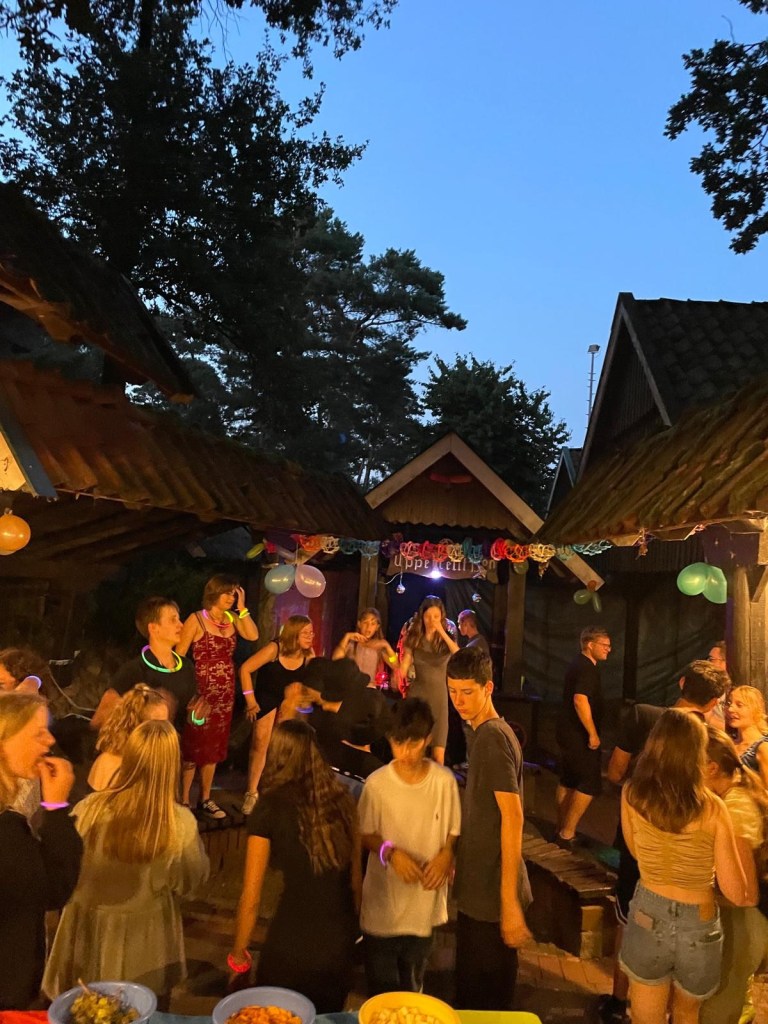 Endlich Lagerdisco unter dem Motto „Boom Boom Boom im Saloon“. Dazu wurde unser Feuerplatz in einen richtig coolen Club umgewandelt: mit Snacks wie Wassermelone, Käsewürfel, Minisalami, Kinder-Bowle, aber auch Discokugel, Strobolicht, DJ-Zone und viel mehr. Seht selbst in unserer Instagram Story.