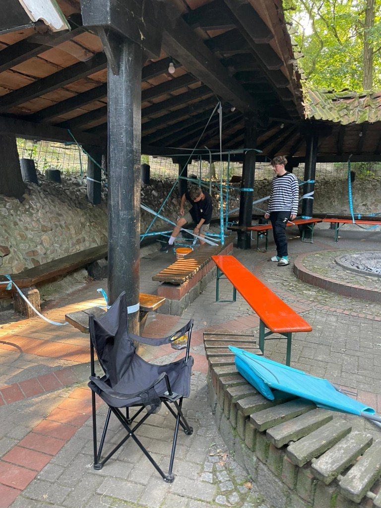 Also werden wir jetzt noch diesen erfolgreichen Sommerlagertag zu Ende bringen. Zusammen im Essenszelt mit einem Quiz und später an unserer überdachten (ja wirklich, purer Luxus) Feuerstelle.