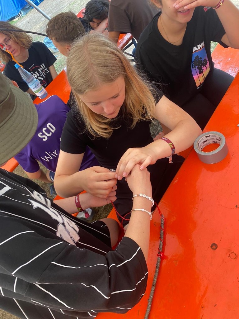 Nach dem laid back Spüldienst starteten dann freiwillige AGs: Volleyball, Nagellack, Perlenketten basteln, Yoga, Lesen, Blackstories, Werwolf und Singsang-AG standen den Kindern zu Verfügung. Danke an die Leiter*innen für ihr Mitwirken.