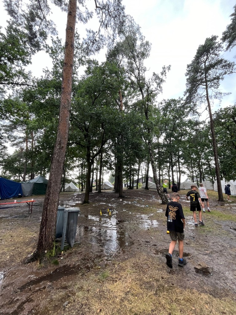 Zum Mittagessen ging es zurück in den Saloon. Heute gab es Chilli sin Carne mit Tortillias. War lecker aber scheinbar zu scharf (hat sich im Lagerrat herauskristallisiert 🫥🌶️). Das gab nicht nur ein Gewitter im Bauch, denn beim Essen fing es leider auch auf dem Platz richtig an zu krachen. 🥲 Eventuell sind auch ein paar Kinder und Leiterzelte abgesoffen. Mist!