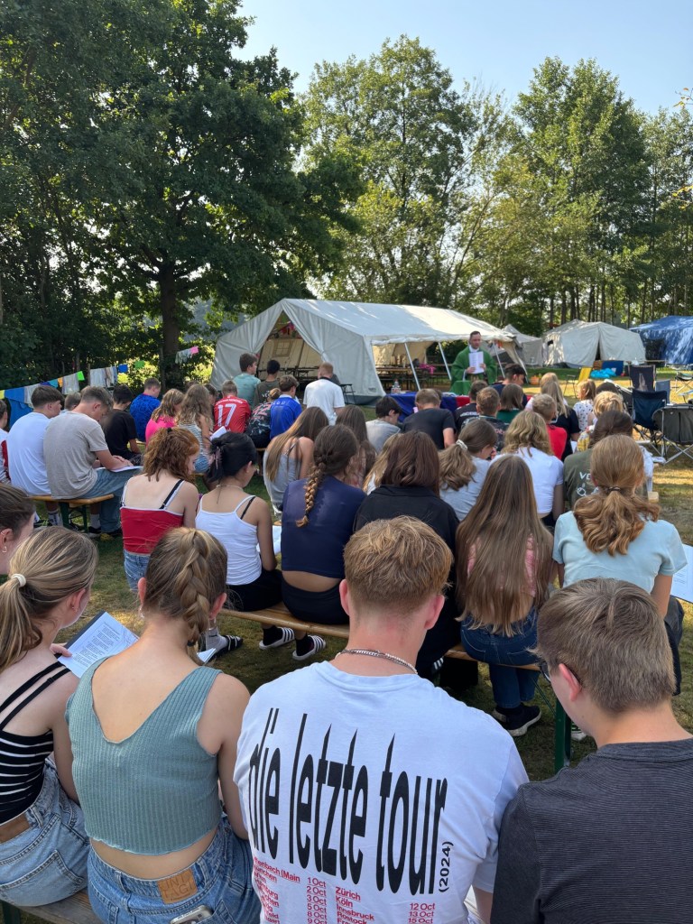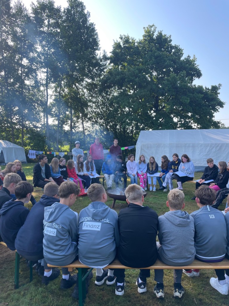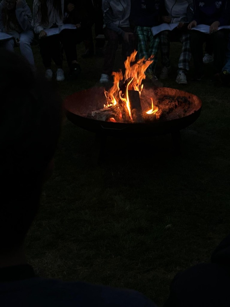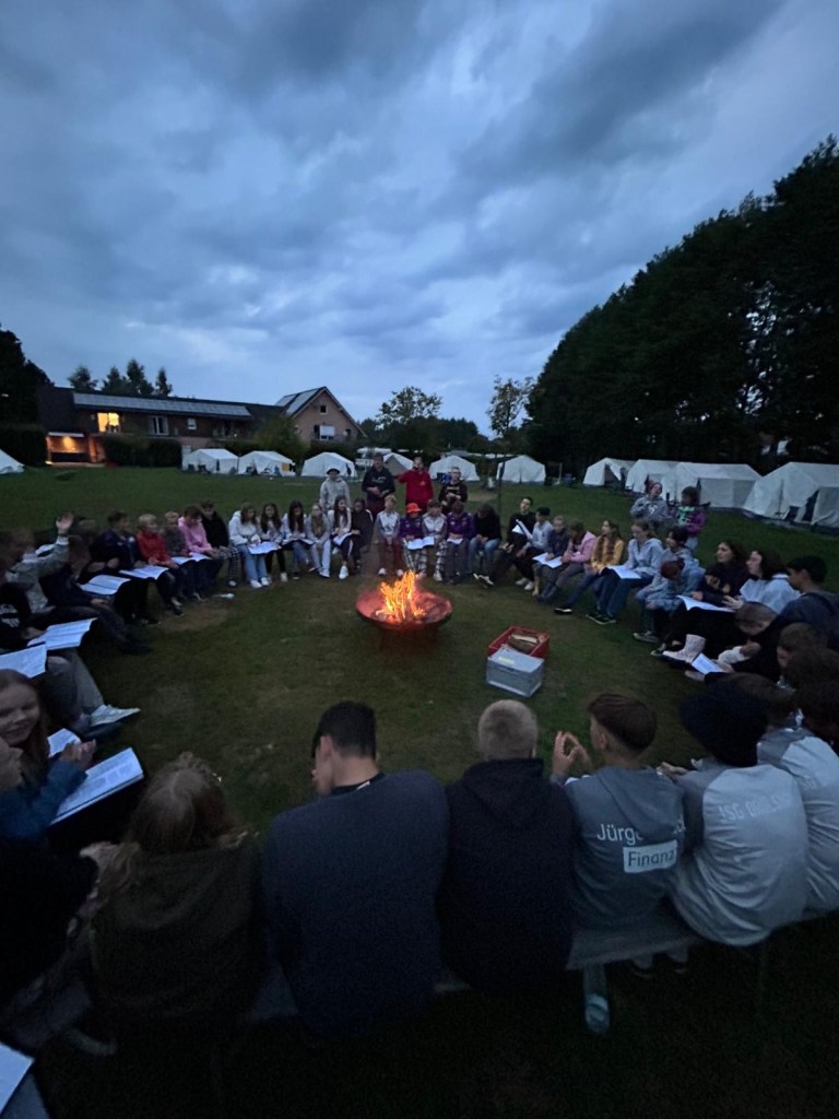 Nach dem Wecken ging es also in langen Sachen ans Lagerfeuer für den abendlichen Sing Sang. 🔥Etwas verwirrt und mit müden Augen wurden also die Liedermappen aufgeschlagen und losgeträllert. 🎶