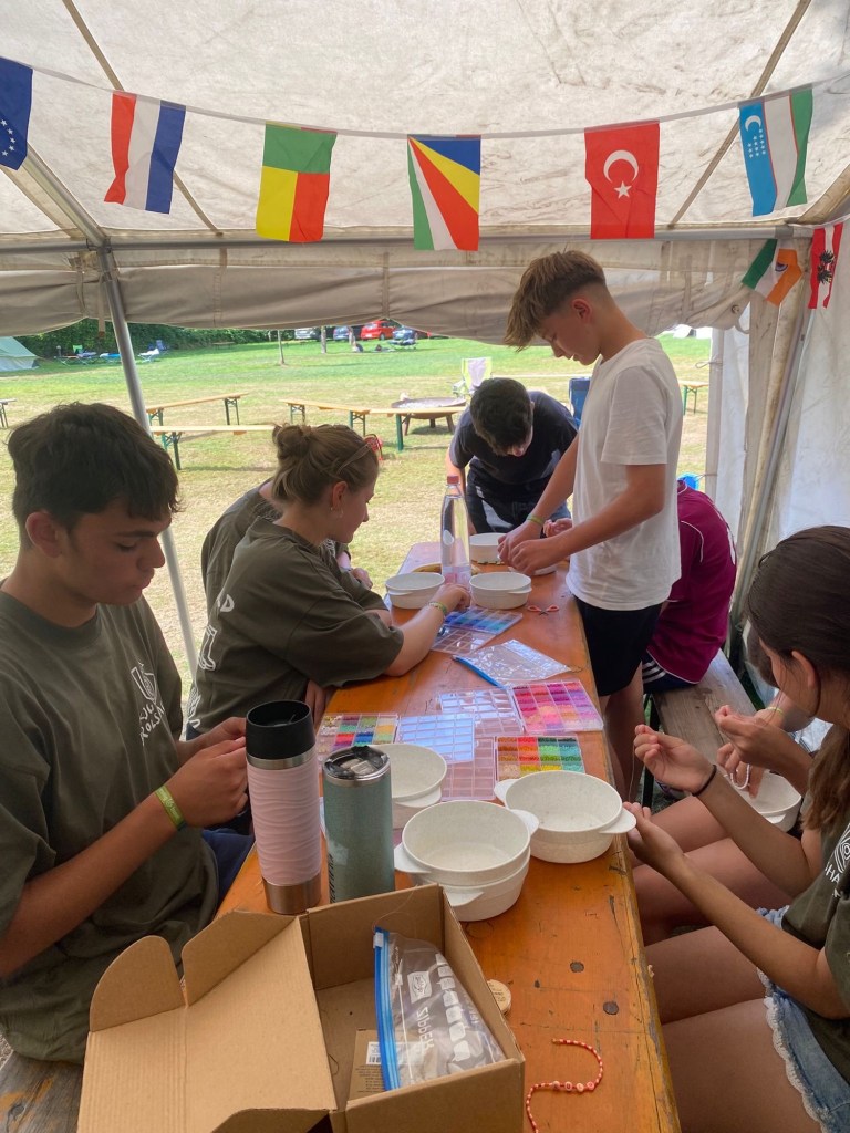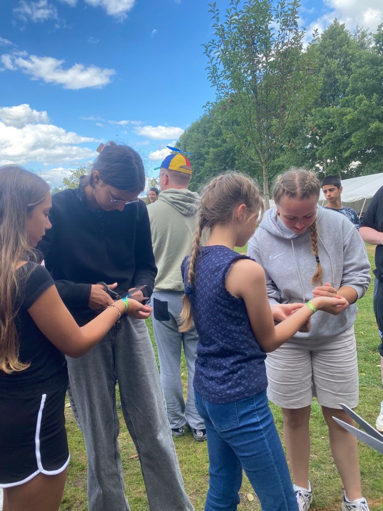 Nach den gewohnten Diensten wartete ein besonderer Preis auf alle Kinder und Leiter: jedes Handgelenk schmückt nun ein Lagerbändchen✨