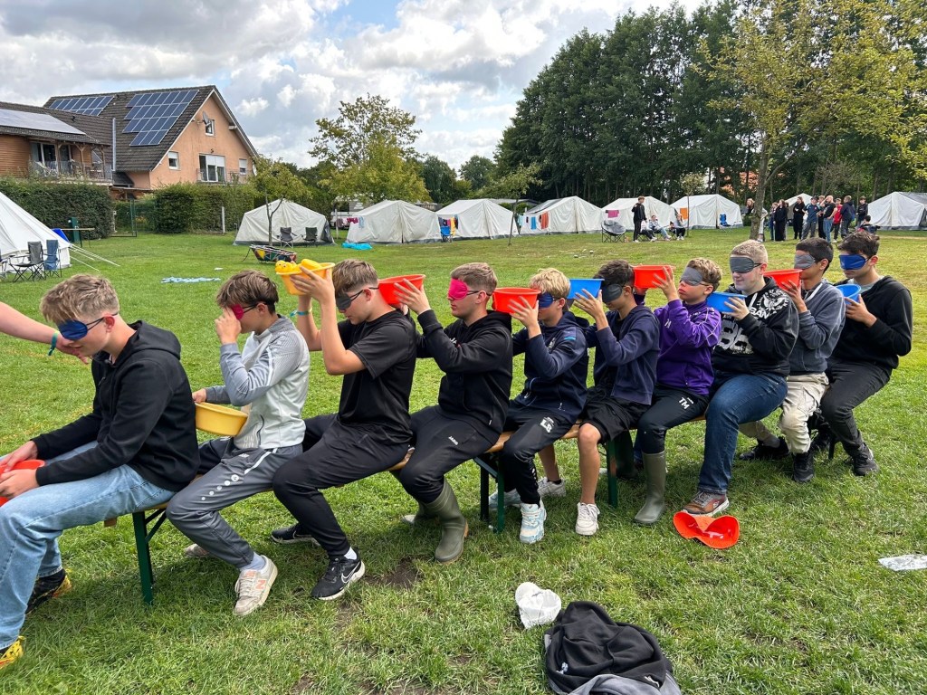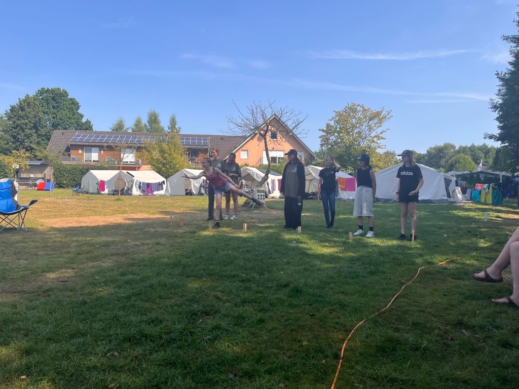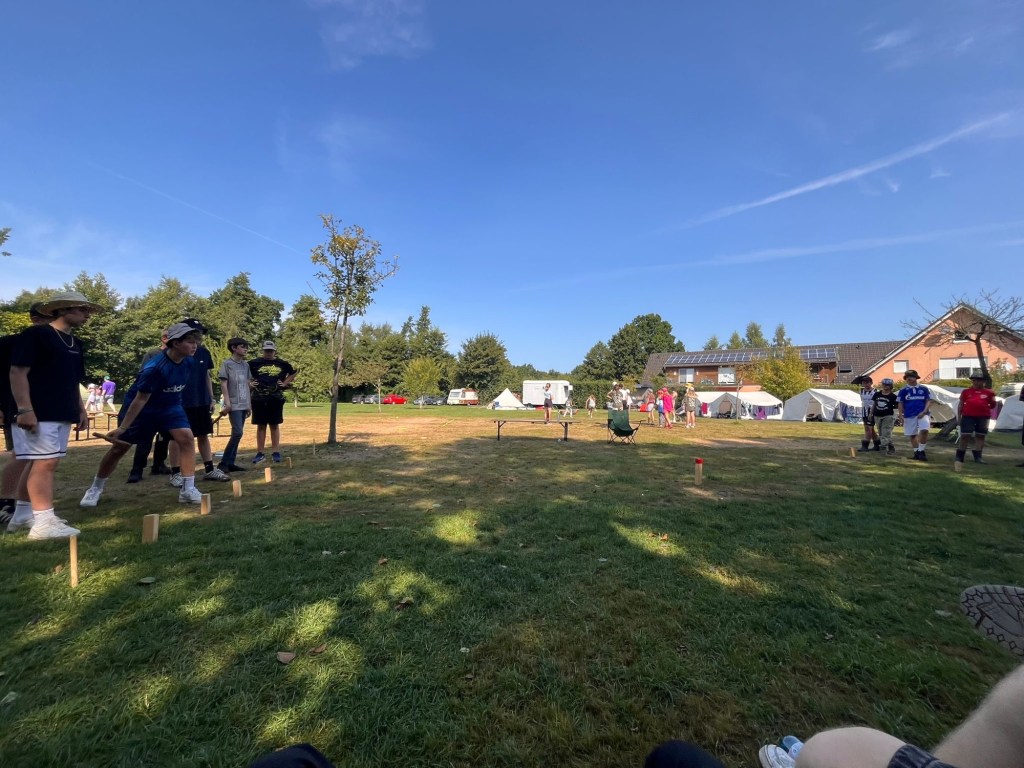 Nach dem Frühstück gab es verschiedene Stationen an denen sich die Kinder mit den Leitern messen konnten. Es war für alle was dabei, von Wikingerschach, über Volleyball, Pantomime und Gesellschaftsspielen🃏🎳🏐🎭.