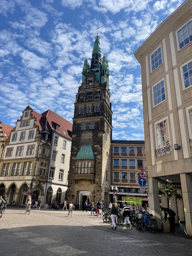 Nachdem die Kinder eine halbe Stunde früher geweckt wurden als sonst und früher gefrühstückt haben, gab es die Auflösung für die Kinder und jetzt auch für euch: es geht in die Stadt Münster 🏙️