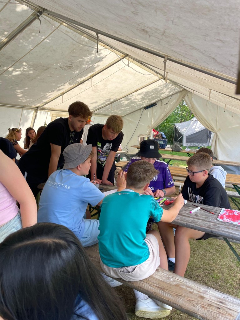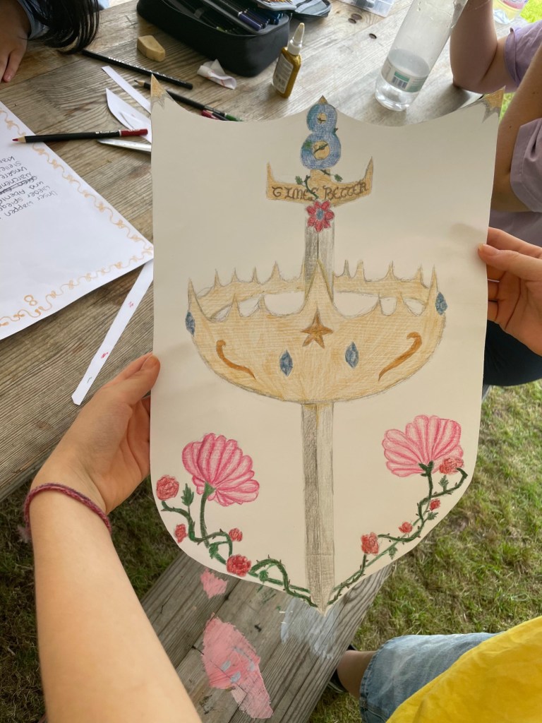 Denn was sind die Kinder ohne ihr Gruppenwappen? Genau, einfach nur eine Lagergruppe! Daher wurden alle in ihren Teams kreativ und griffen zu Pinsel und Schriftrolle um sich in ihren Wappen zu verwirklichen ⚔️🎨 Es war nicht nur ein Kampf zwischen den Gruppen als auch zwischen Ideen und den Grenzen der Kreativität.