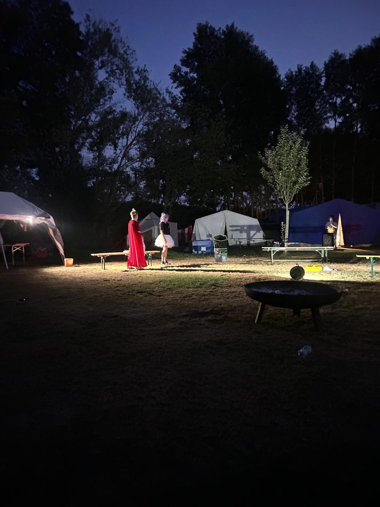 Vor dem Lagerfeuer bekamen die Kinder noch etwas Zeit um eine eigene Version von verschiedenen Märchen zu entwickeln und einzustudieren. Morgen Abend werden diese aufgeführt. So haben wir wenigstens etwas von unserem eigentlichen Thementag machen können 🧚♀️.