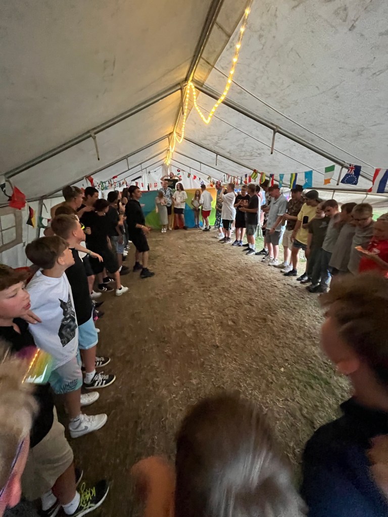 Wir haben uns nun auf die restlichen Zelte aufgeteilt und fallen nach dem anstrengenden Tag hoffentlich bald alle ins Bett 😴🛏️.